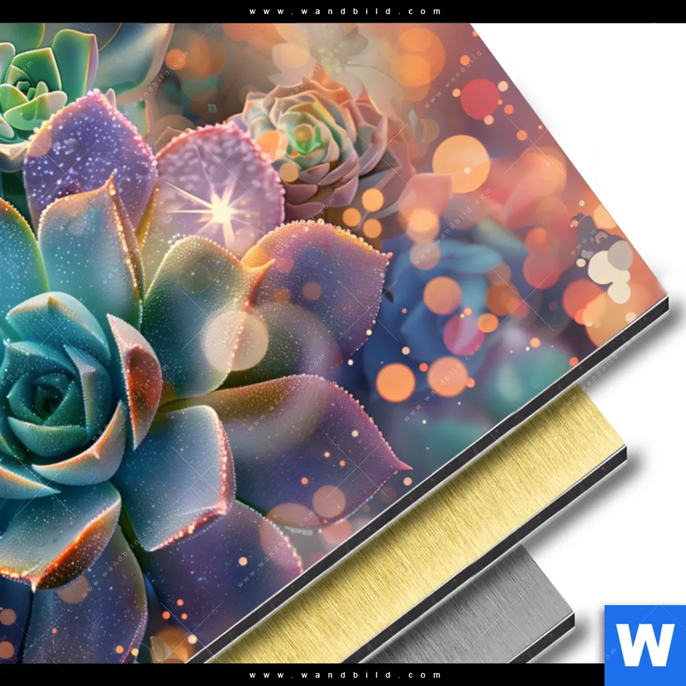 Aluminiumbild gebürstet | Glänzende Sukkulenten | Hochformat