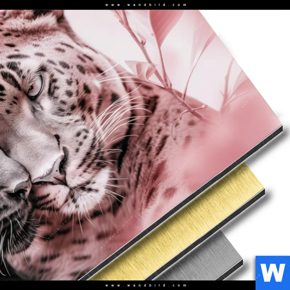 Aluminiumbild gebürstet | Leoparden - Harmonie in Pastell | Querformat