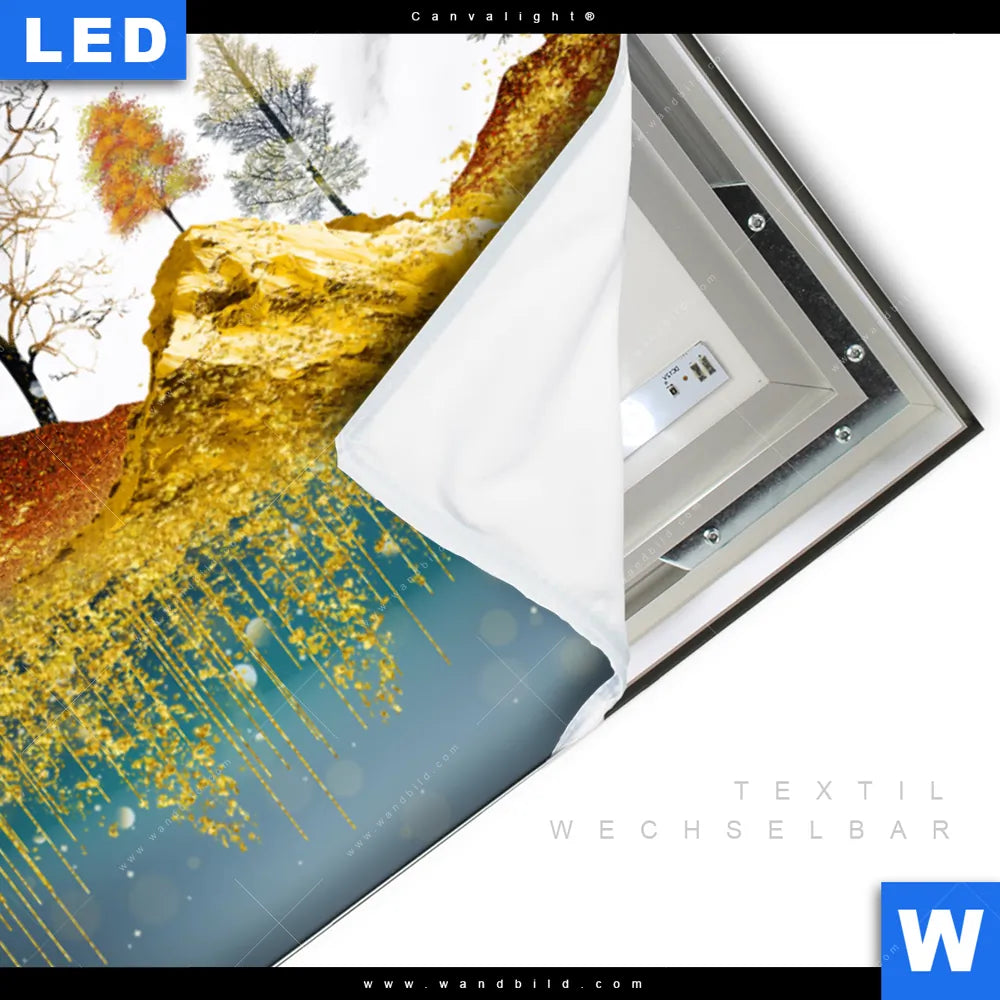 LED-Textilrahmen-Bild mit austauschbarem Landschaften Textil-Druck (Wechselbild)