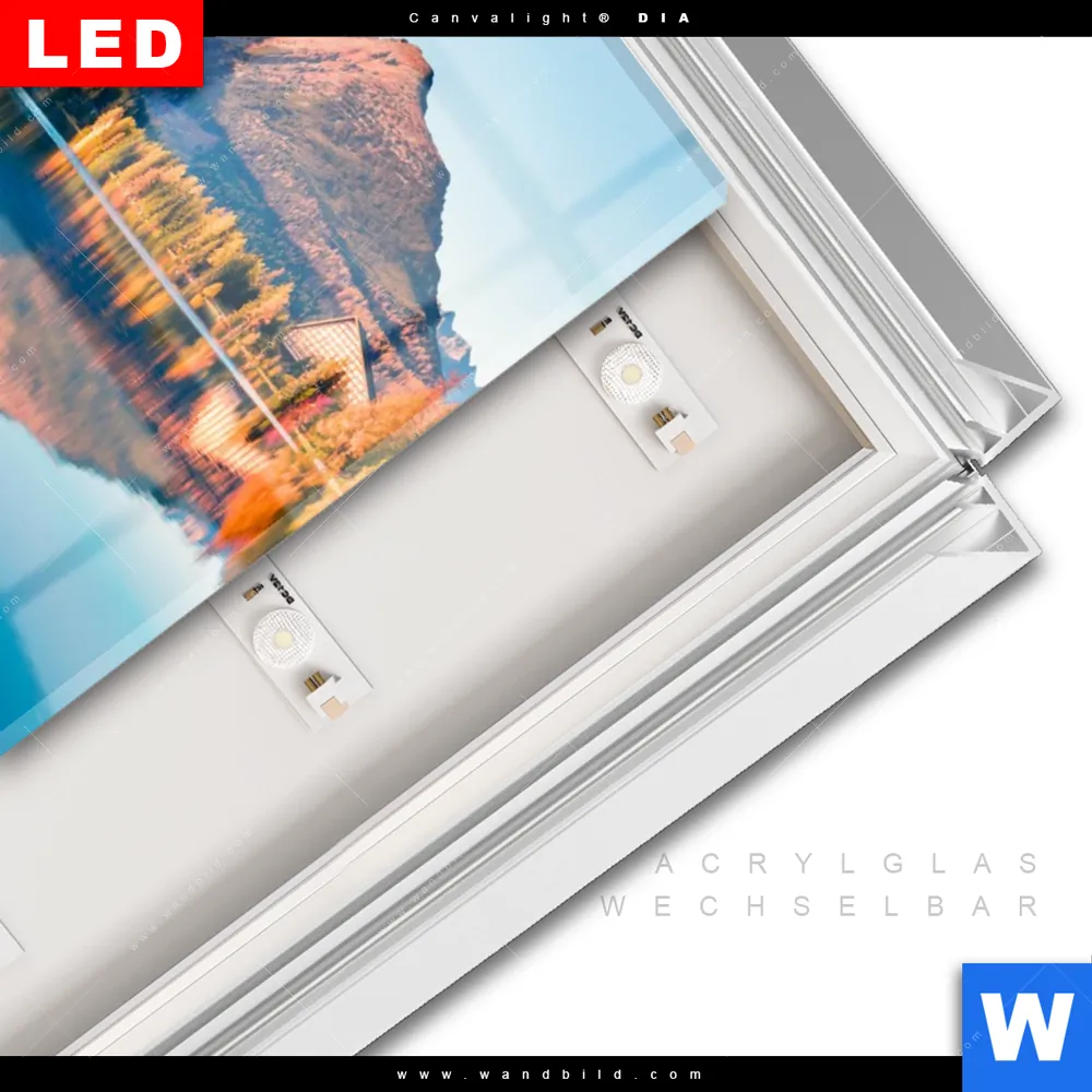 LED-Glasbild mit austauschbarem Acrylglas-Druck (Wechselbild)