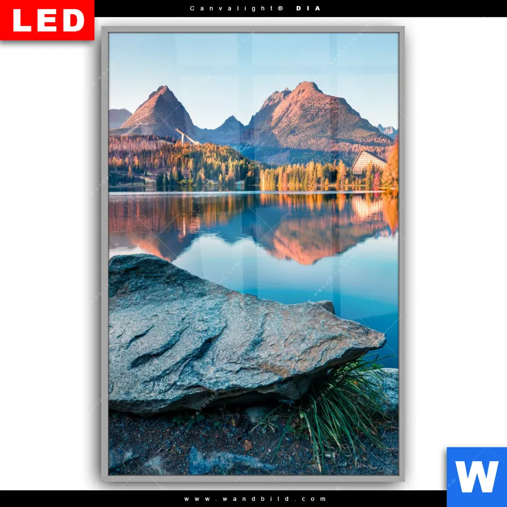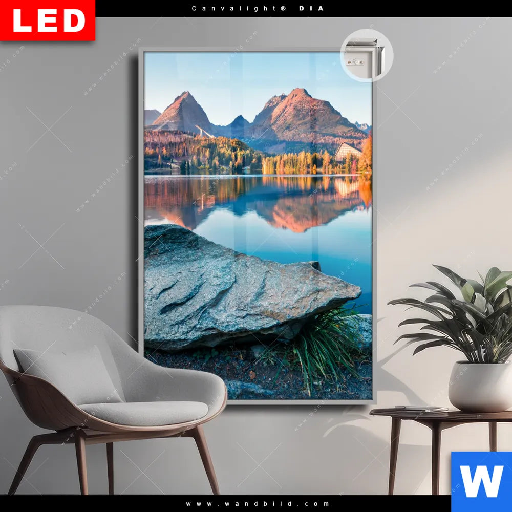 Canvalight® DIA Leuchtbild | Abendszene mit Bergen und See | Hochformat