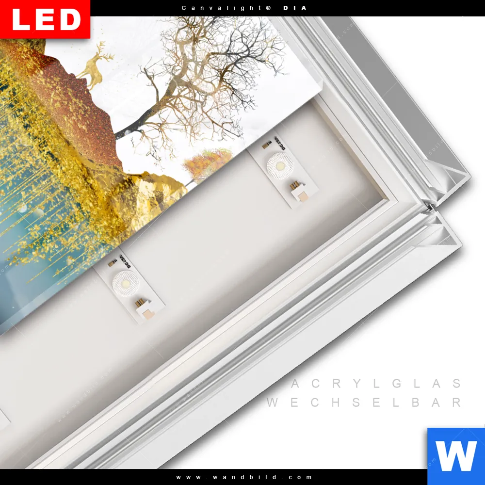 LED-Glasbild mit austauschbarem Acrylglas-Druck (Wechselbild)