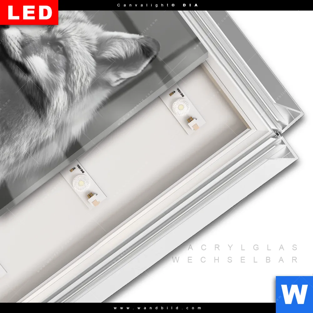 LED-Glasbild mit austauschbarem Acrylglas-Druck (Wechselbild)