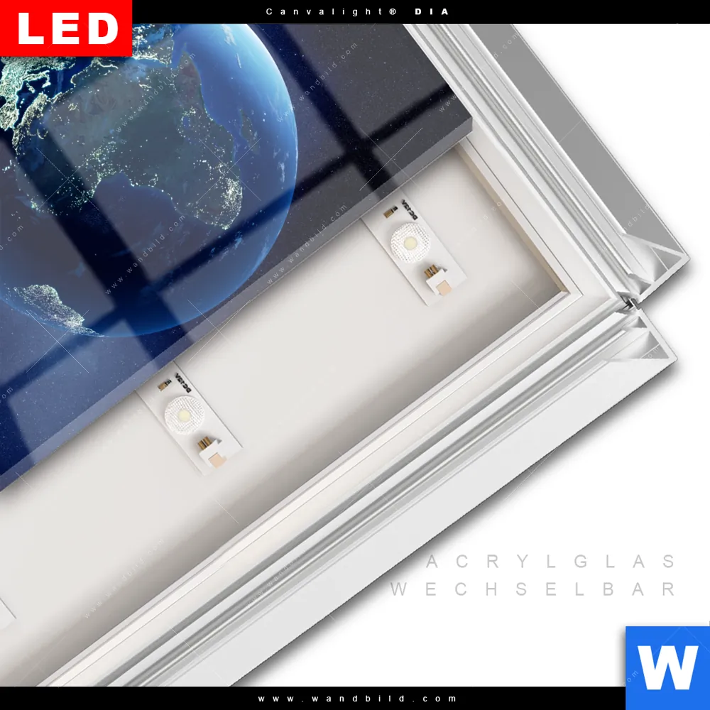 LED-Glasbild mit austauschbarem Acrylglas-Druck (Wechselbild)