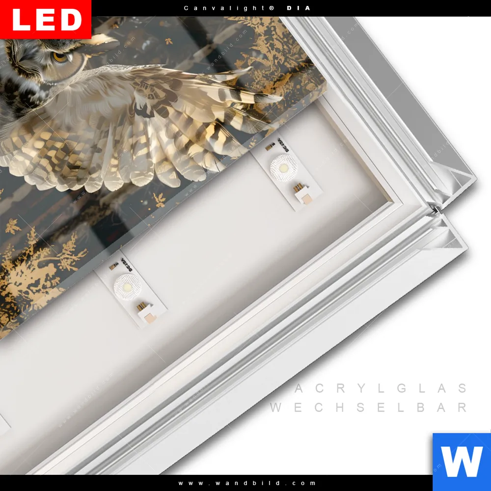 LED-Glasbild mit austauschbarem Acrylglas-Druck (Wechselbild)