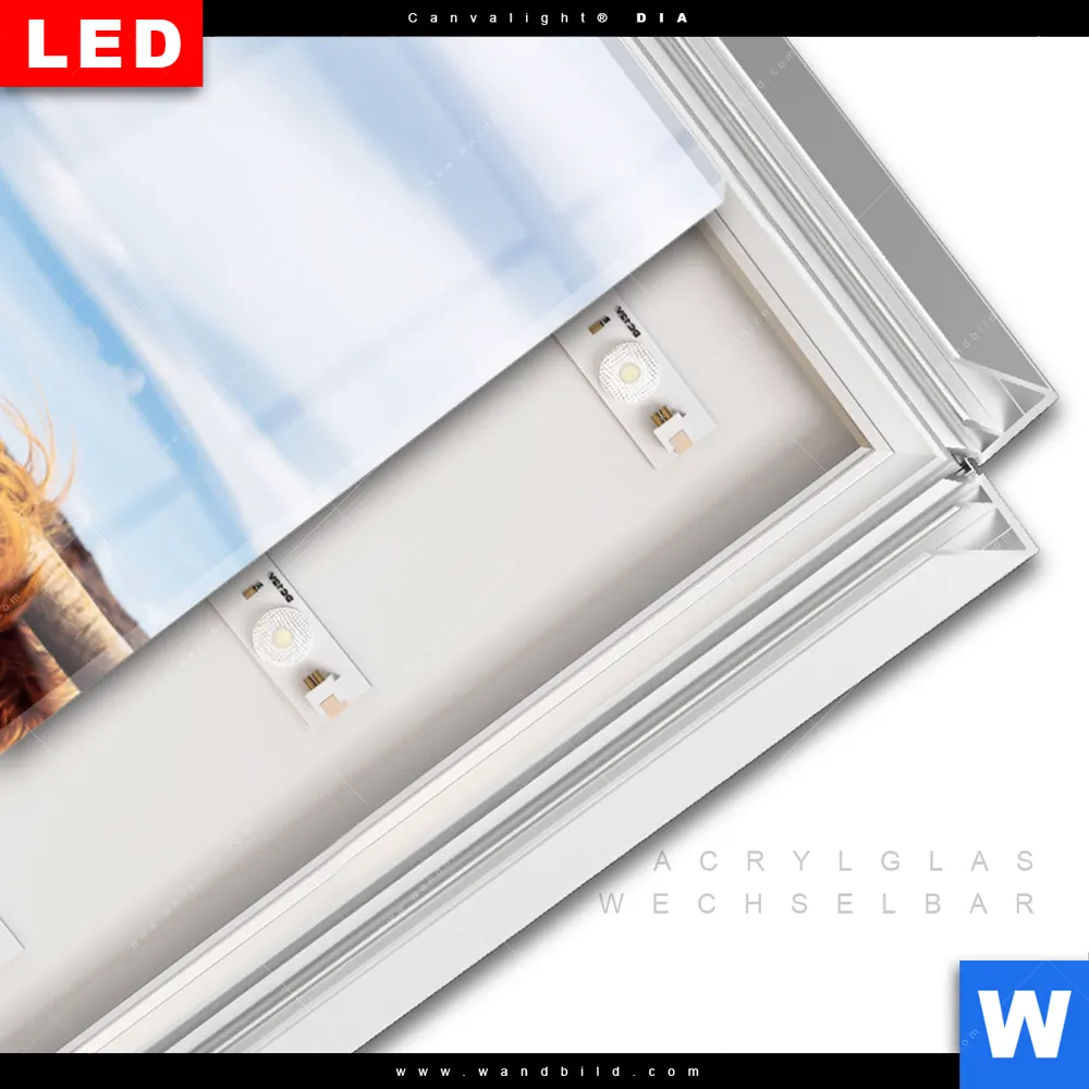 LED-Glasbild mit austauschbarem Acrylglas-Druck (Wechselbild)