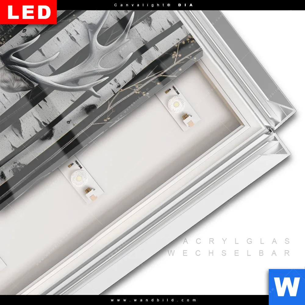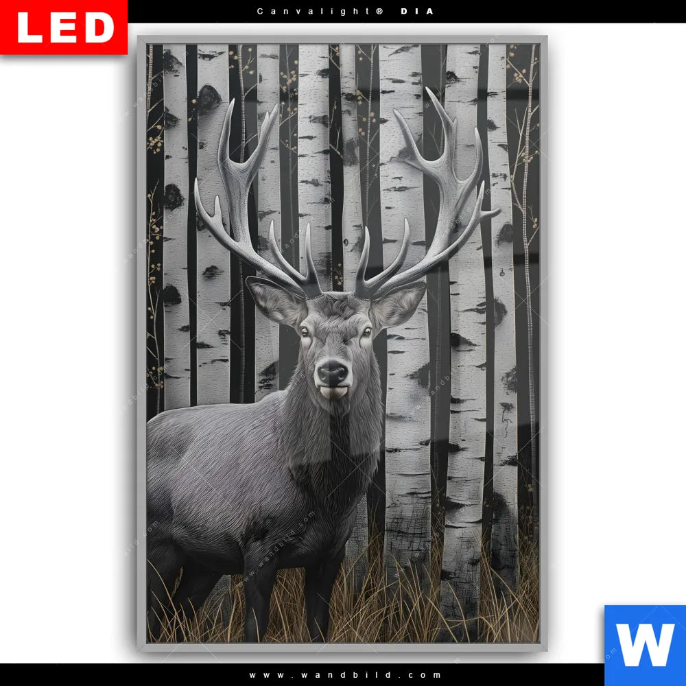Canvalight® DIA Leuchtbild | Hirschporträt vor Birken | Hochformat