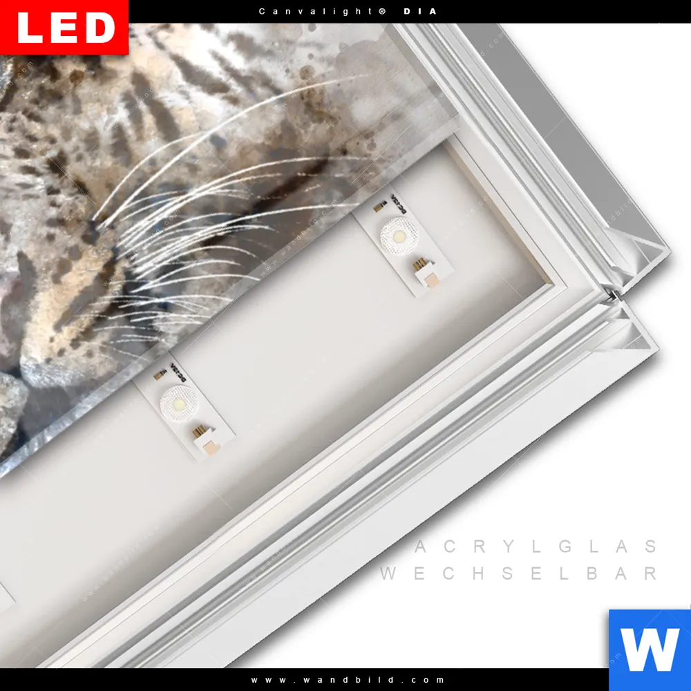 Canvalight® DIA Leuchtbild | Leopard Aquarell | Panorama