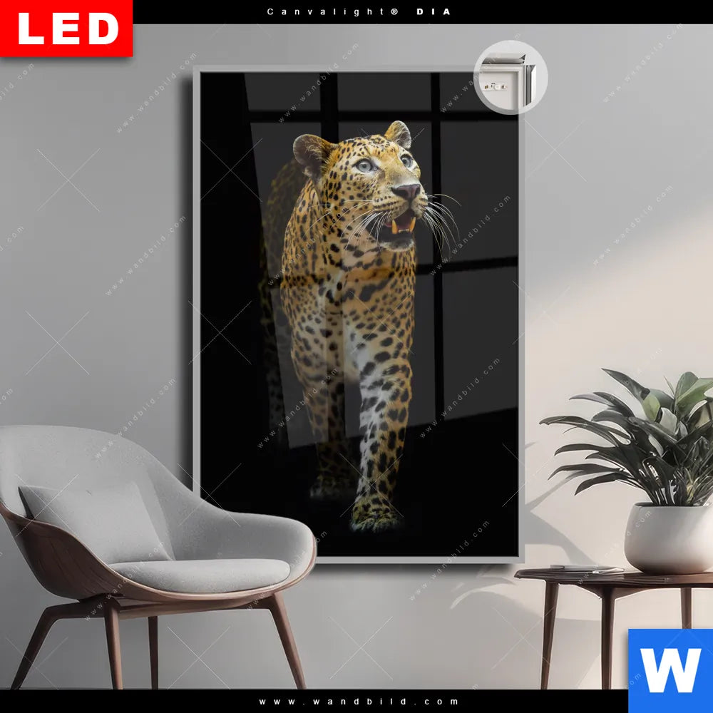 Canvalight® DIA Leuchtbild | Leopard in der Dunkelheit | Hochformat