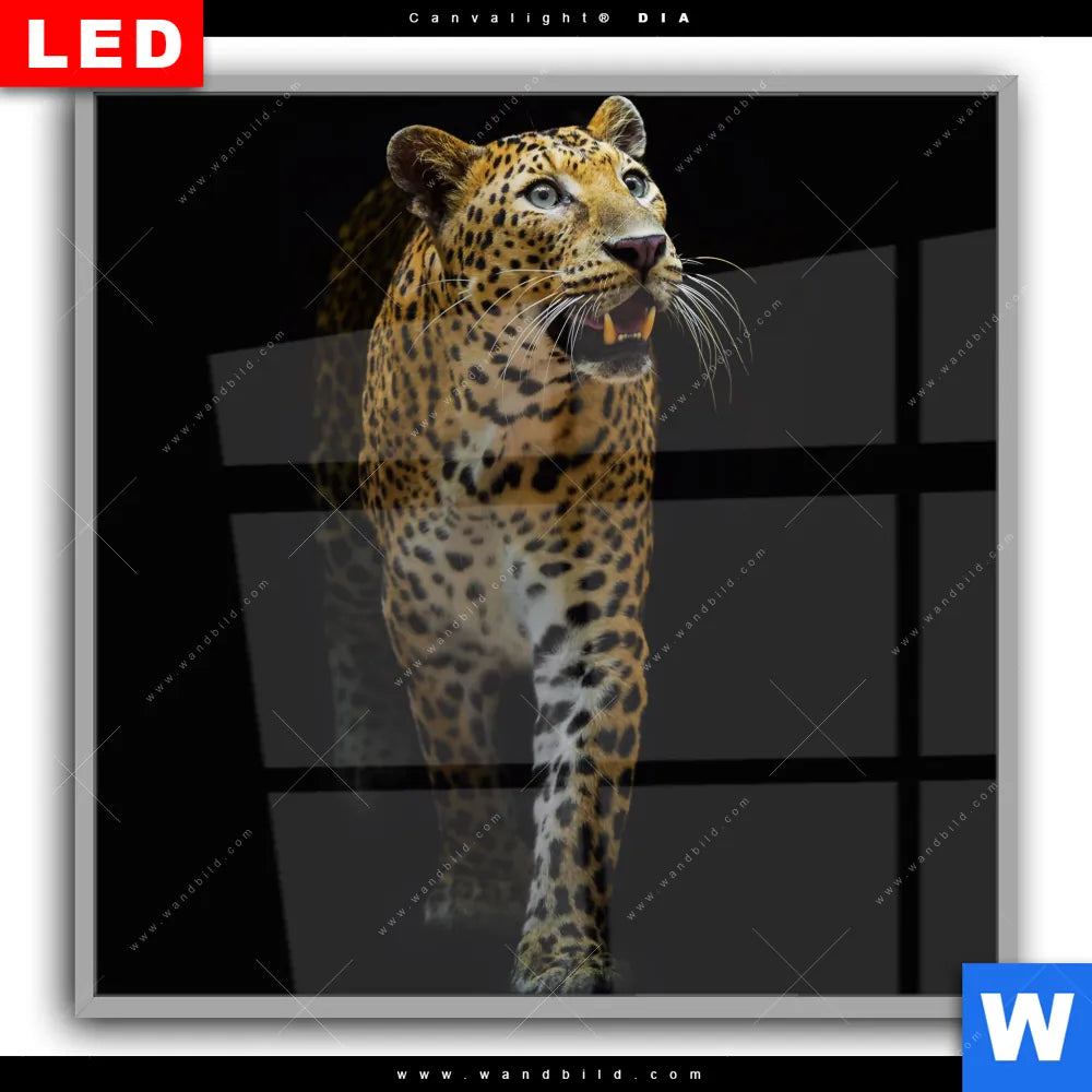 Canvalight® DIA Leuchtbild | Leopard in der Dunkelheit | Quadrat