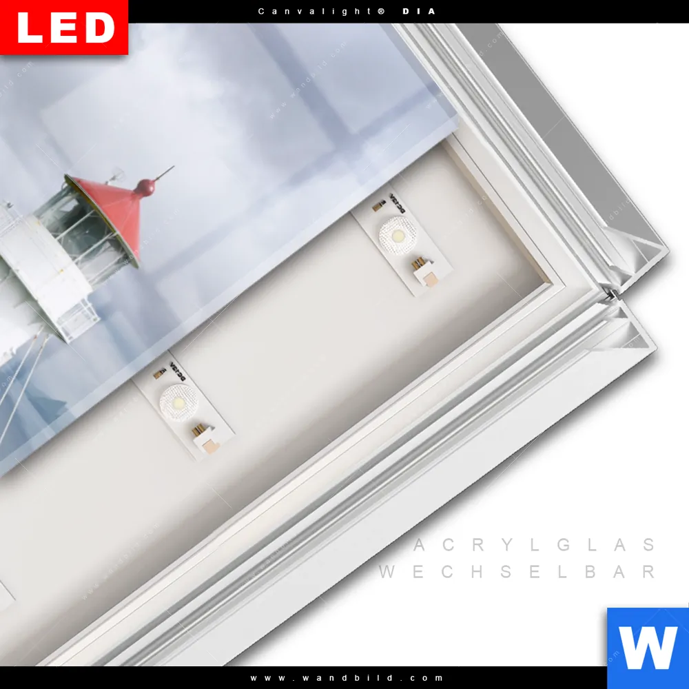 LED-Glasbild mit austauschbarem Acrylglas-Druck (Wechselbild)