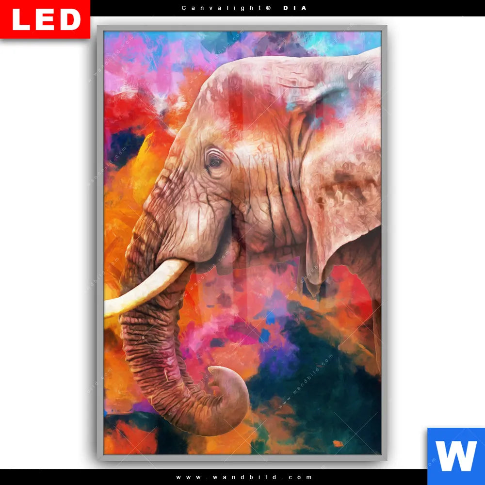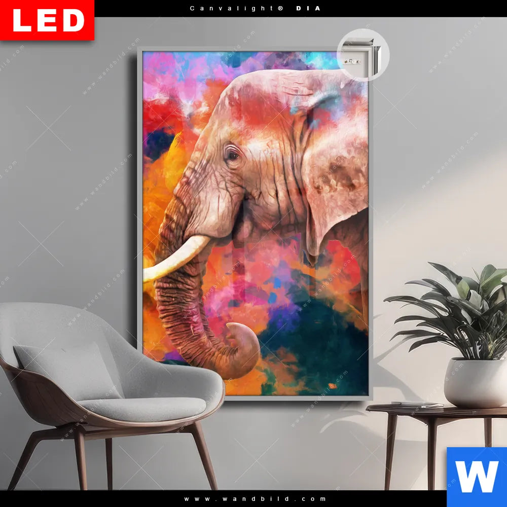 Canvalight® DIA Leuchtbild | Moderner Bunter Elefant | Hochformat