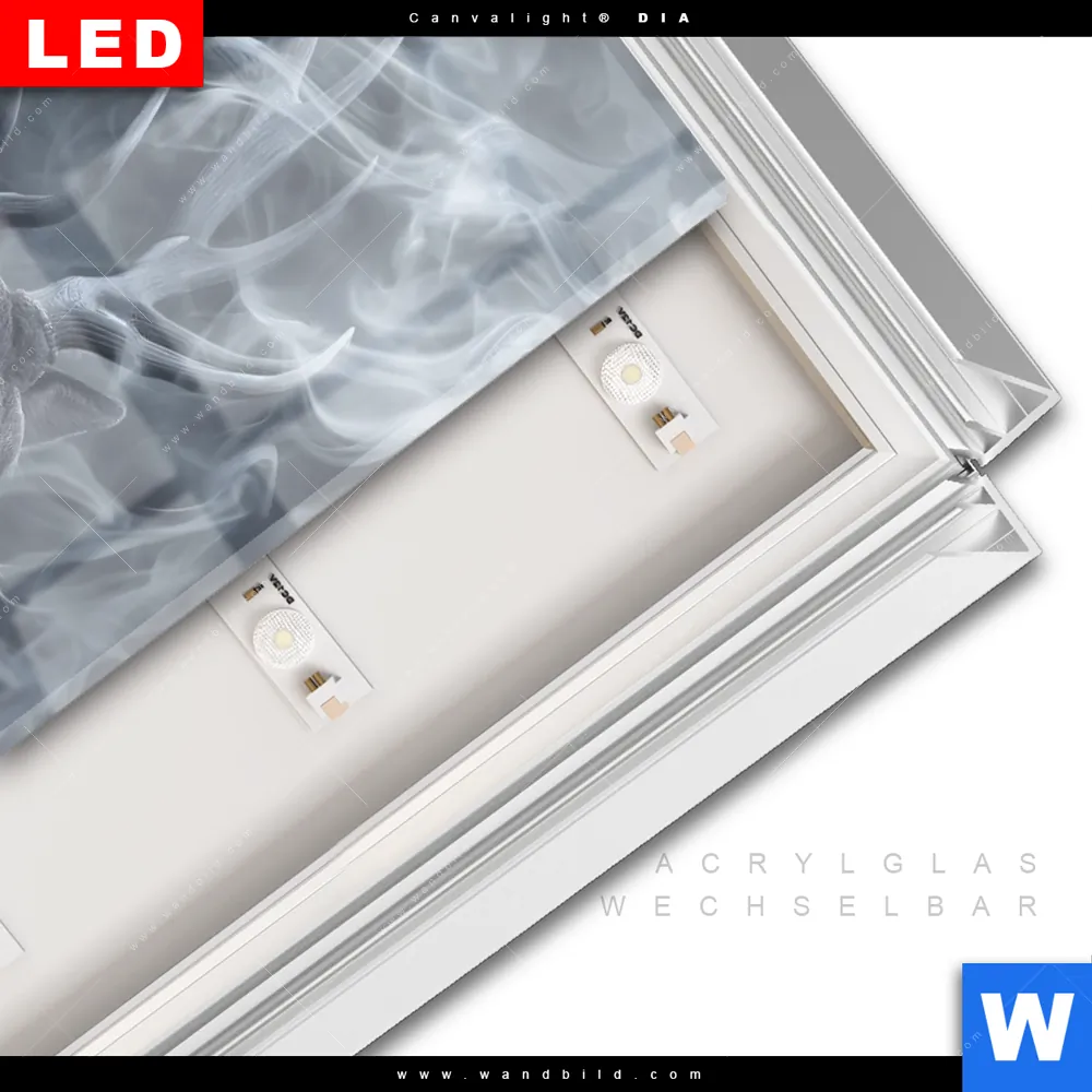 LED-Glasbild mit austauschbarem Acrylglas-Druck (Wechselbild)