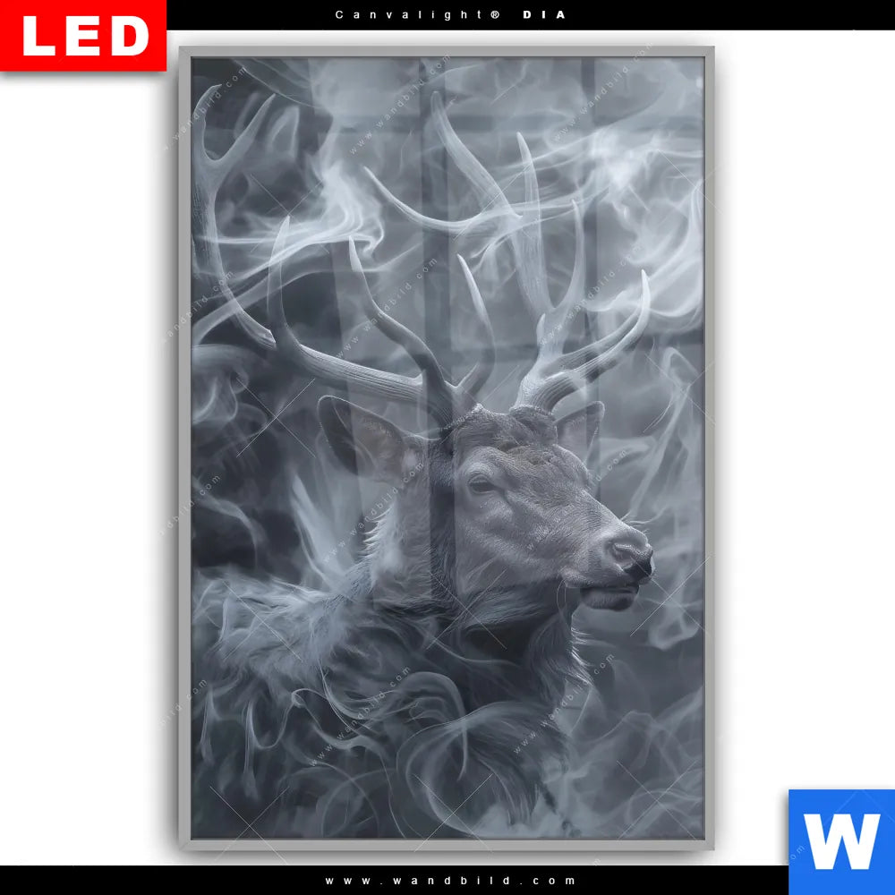 Canvalight® DIA Leuchtbild | Mystischer Hirsch im Nebel | Hochformat
