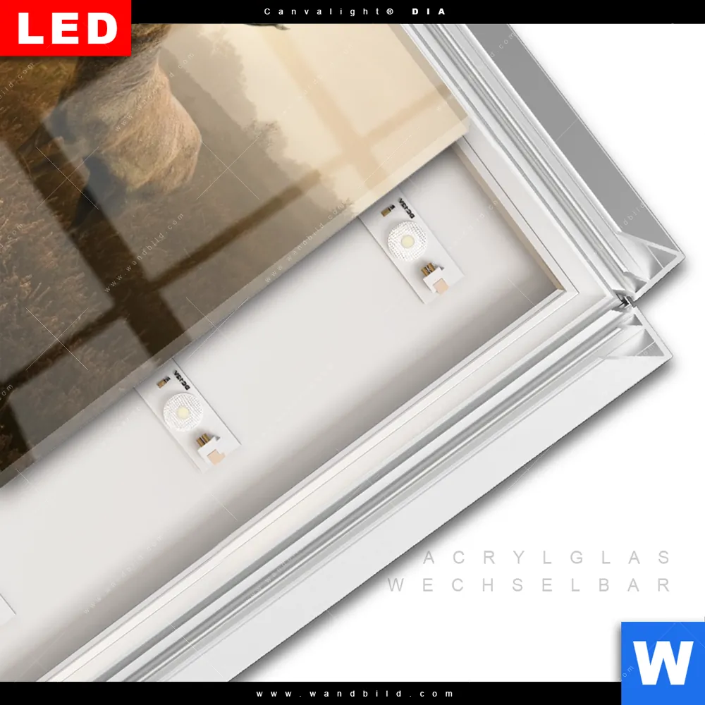 LED-Glasbild mit austauschbarem Acrylglas-Druck (Wechselbild)