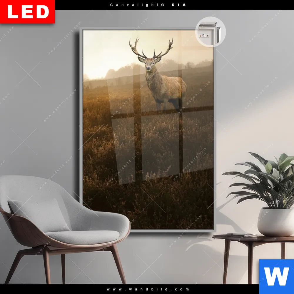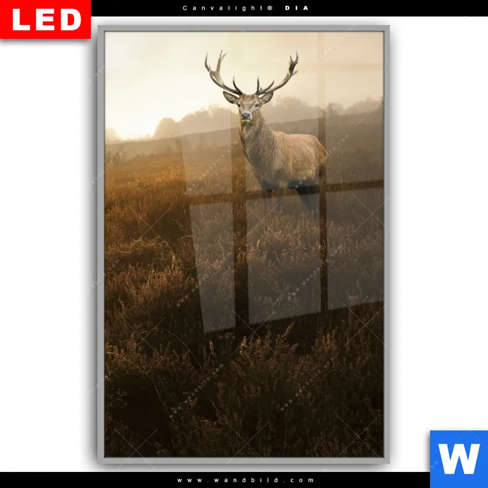 Canvalight® DIA Leuchtbild | Rothirsch im Nebel | Hochformat