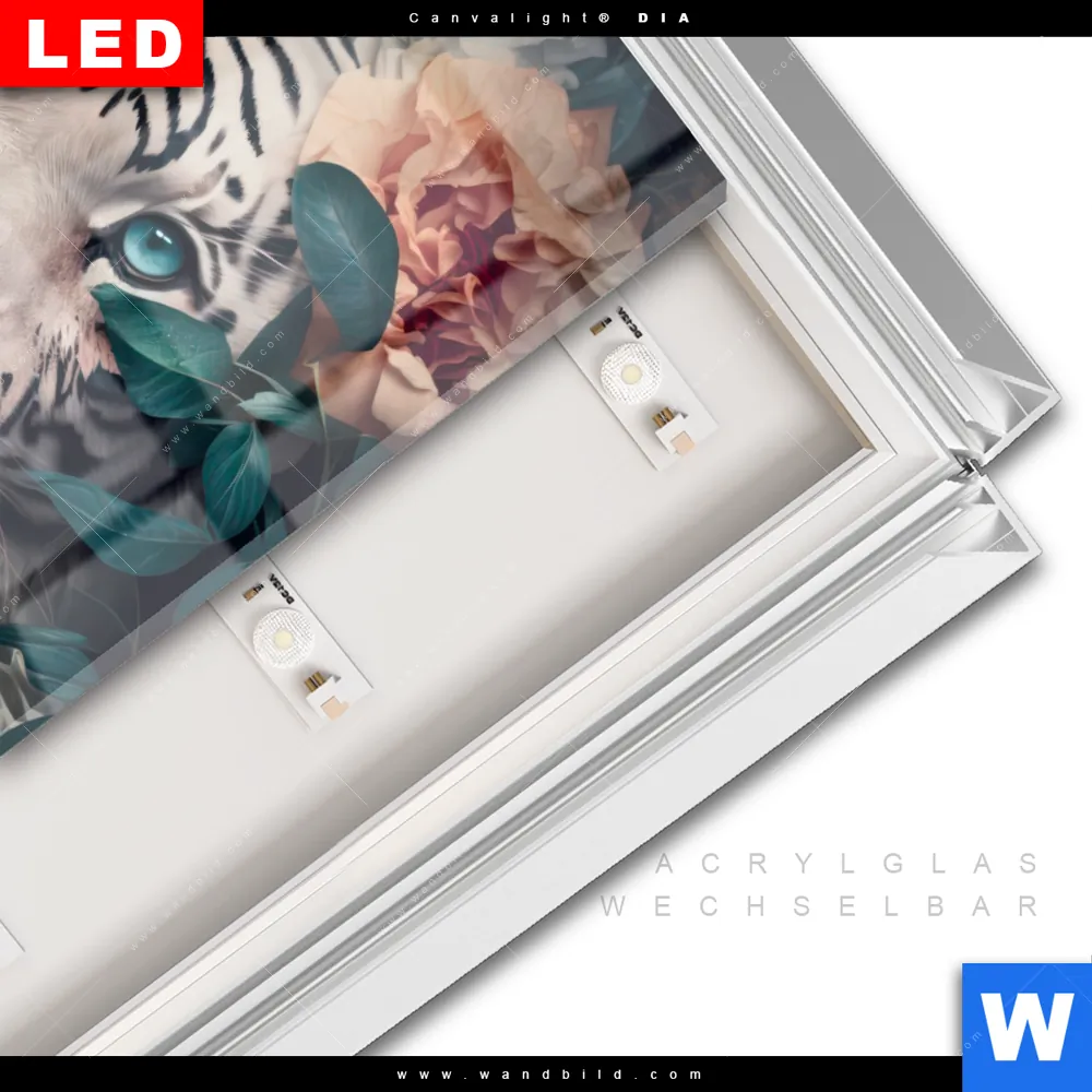 LED-Glasbild mit austauschbarem Acrylglas-Druck (Wechselbild)