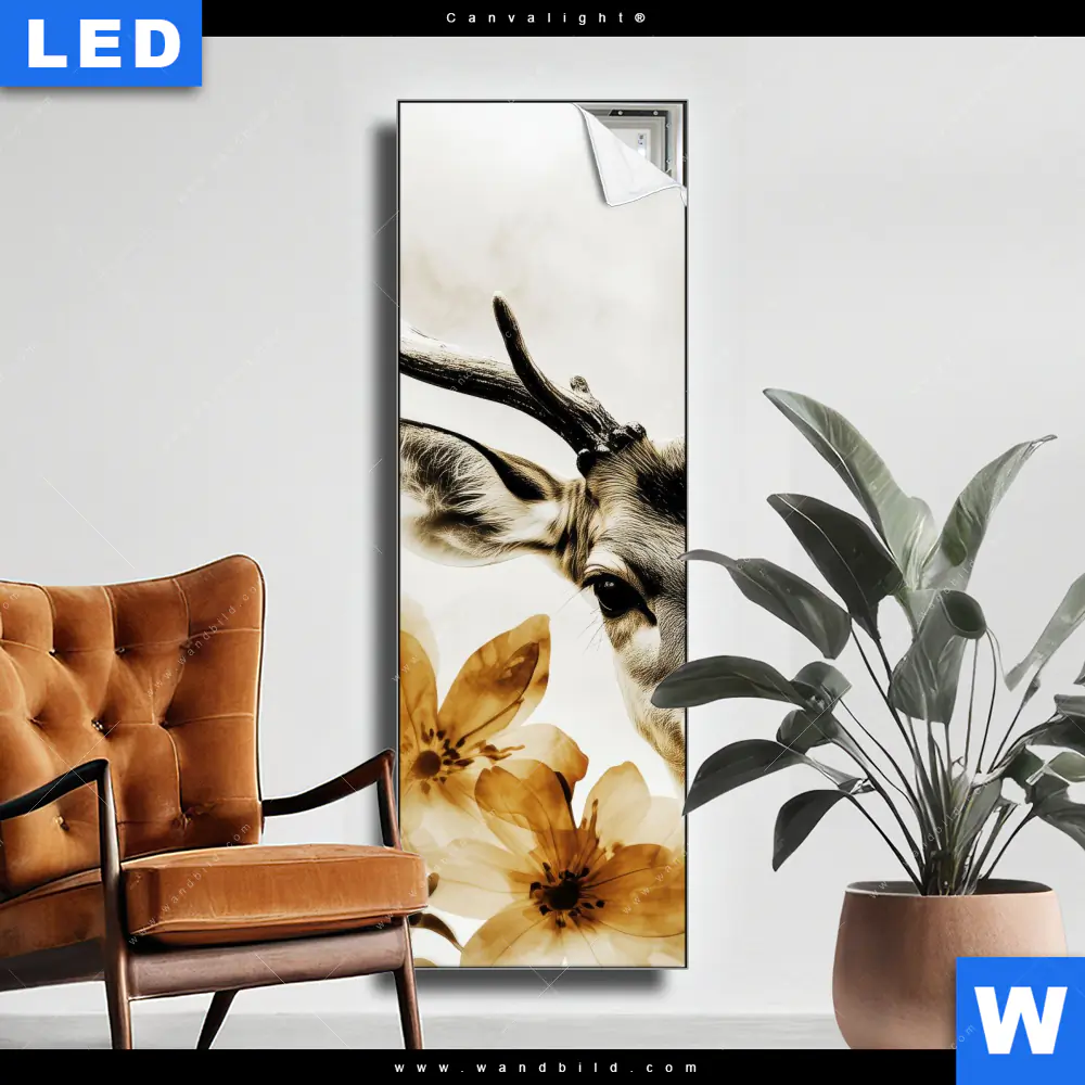 Canvalight® Leuchtbild | Blütenpracht trifft Geweih | Schmal