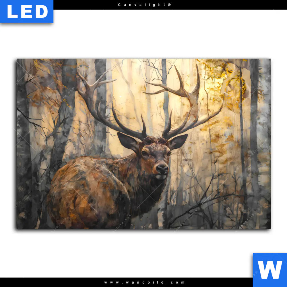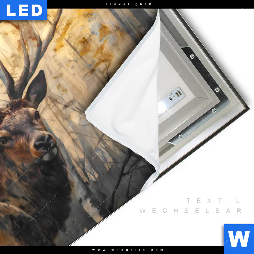 Canvalight® TEX Leuchtbild | Hirsch im Morgenlicht | Querformat