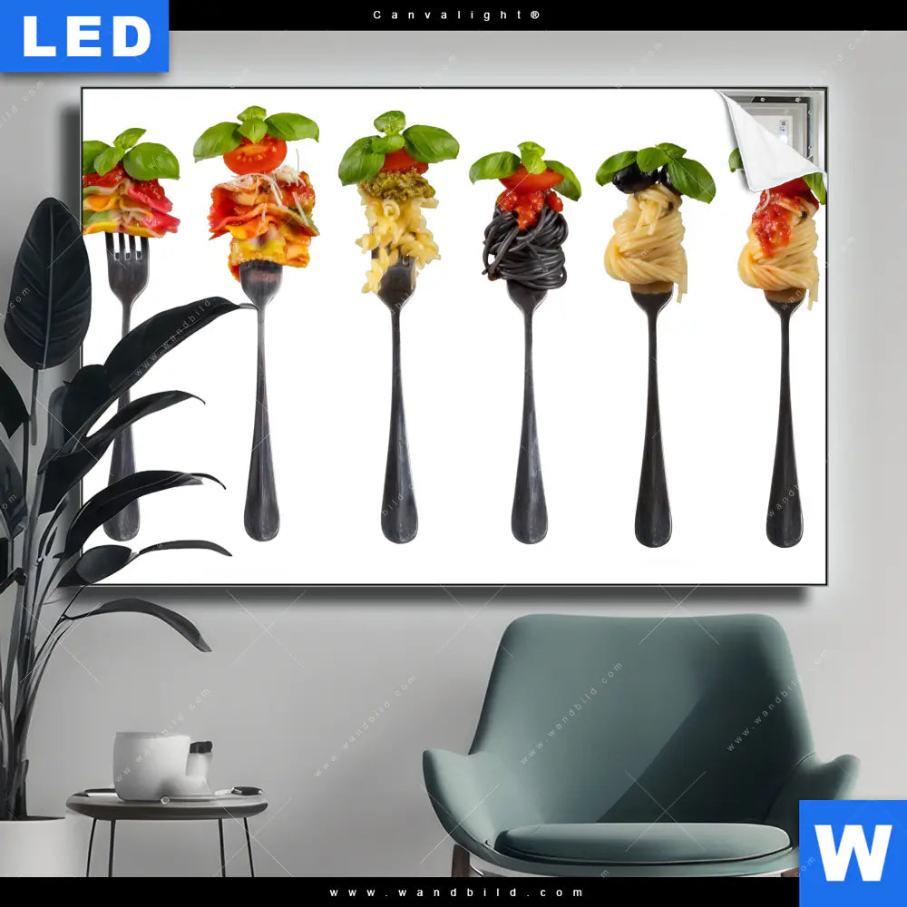 Canvalight® Leuchtbild | Pasta auf Gabeln | Querformat