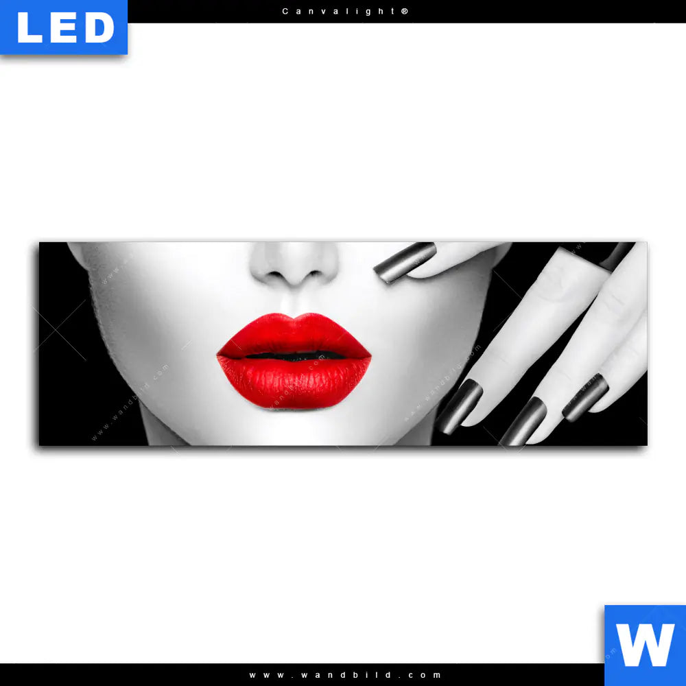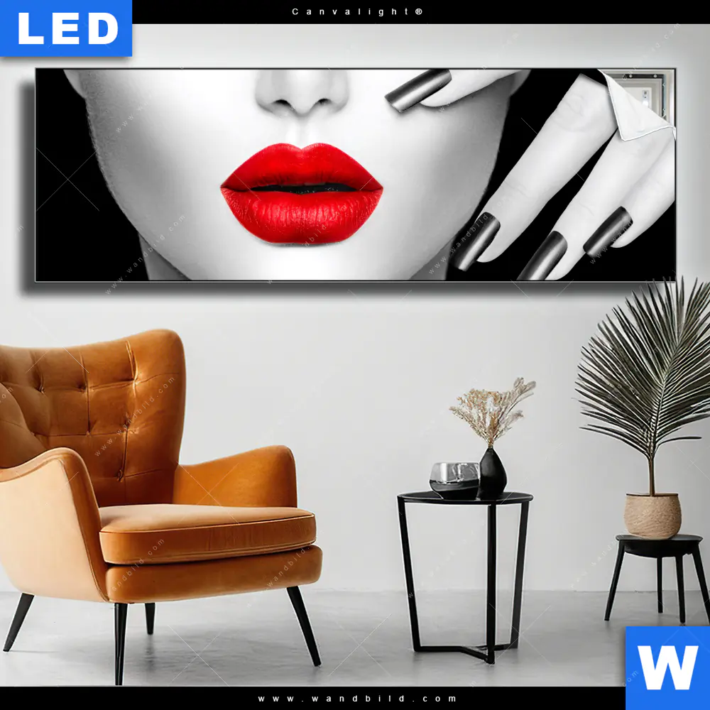 Canvalight® TEX Leuchtbild | Schwarze Eleganz & rote Lippen | Panorama
