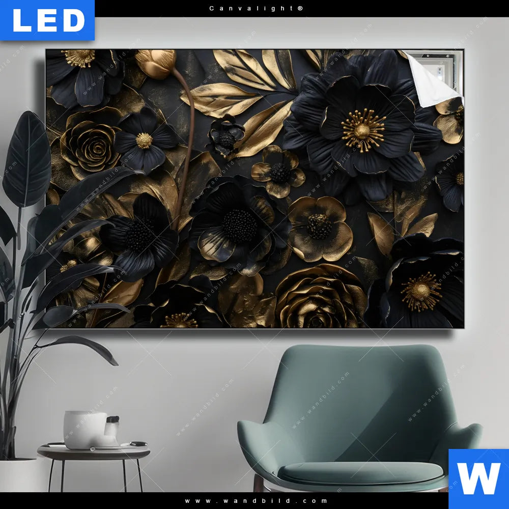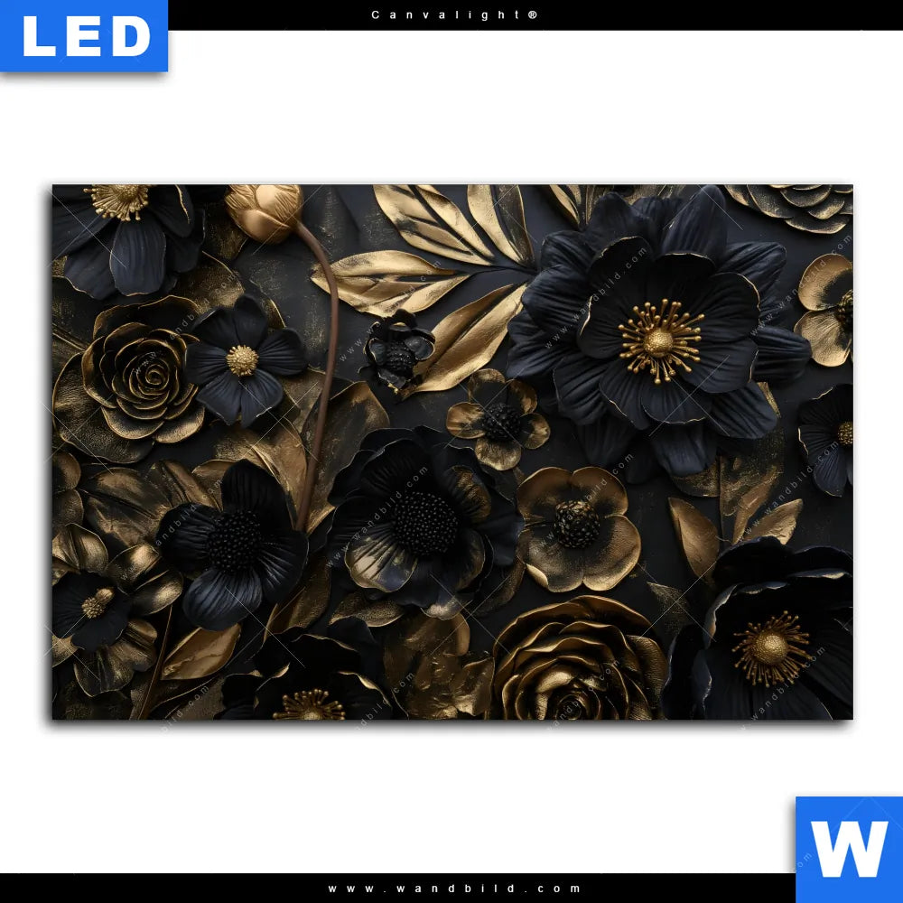 Canvalight® Leuchtbild | Schwarze und goldene Blüten | Querformat