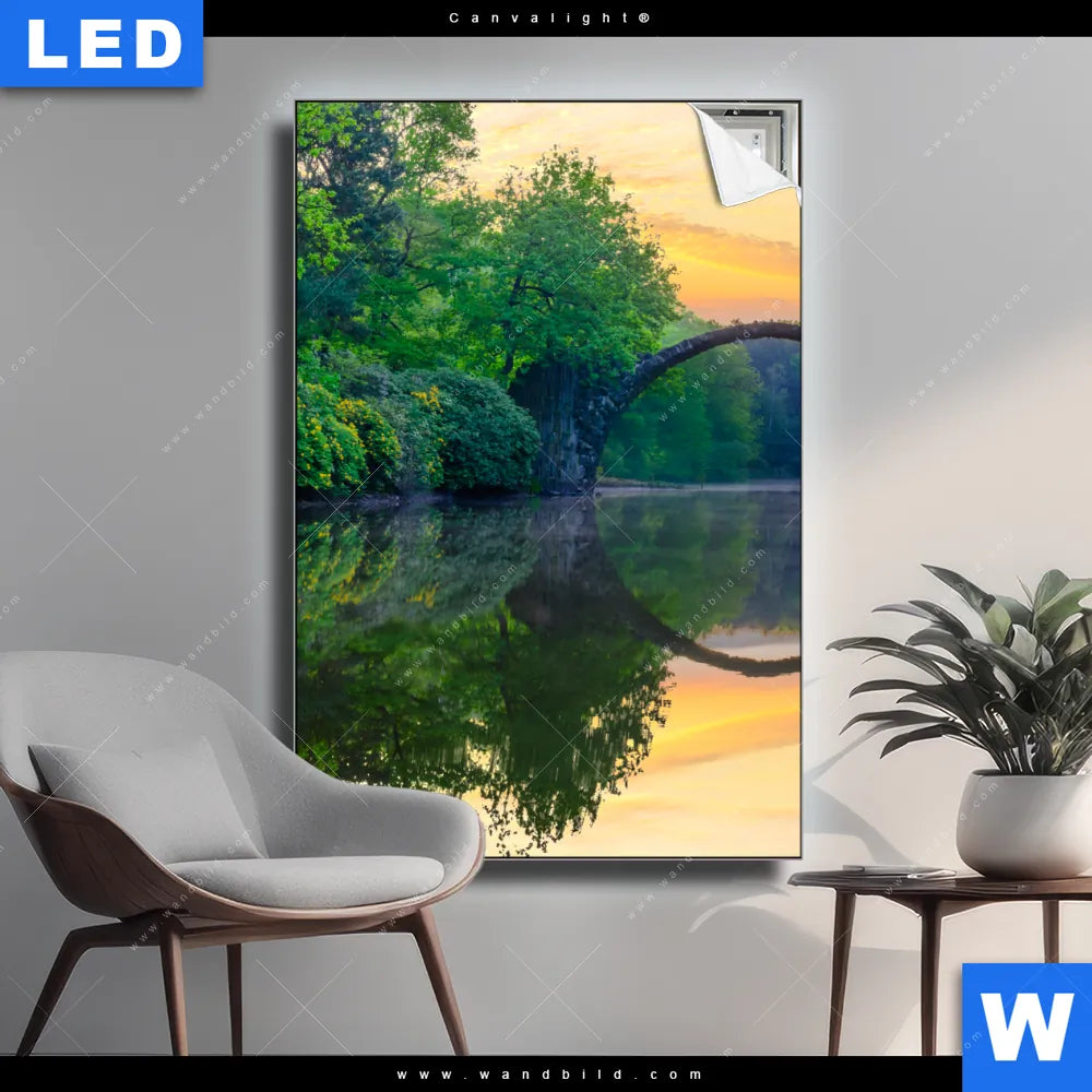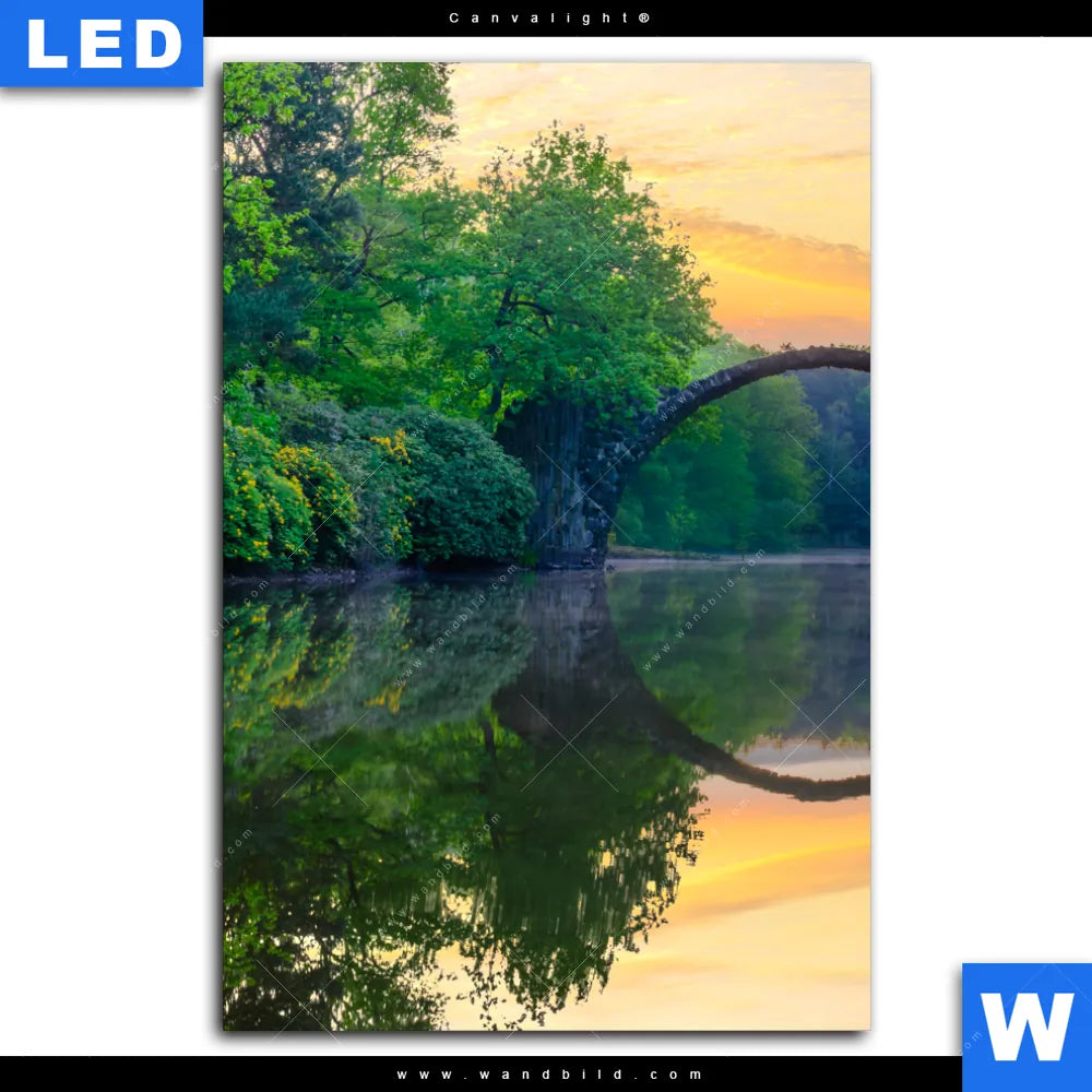 Canvalight® Leuchtbild | See mit alter Brücke aus Stein | Hochformat