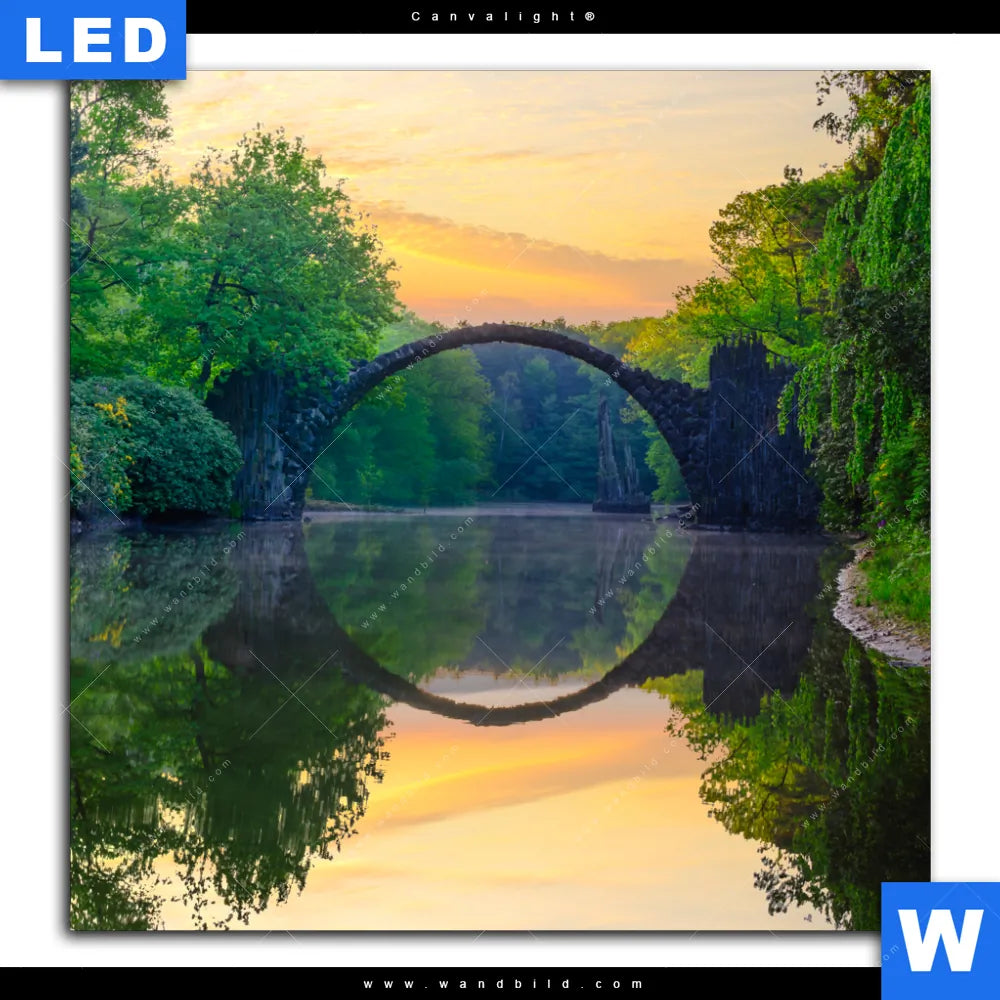 Canvalight® Leuchtbild | See mit alter Brücke aus Stein | Quadrat