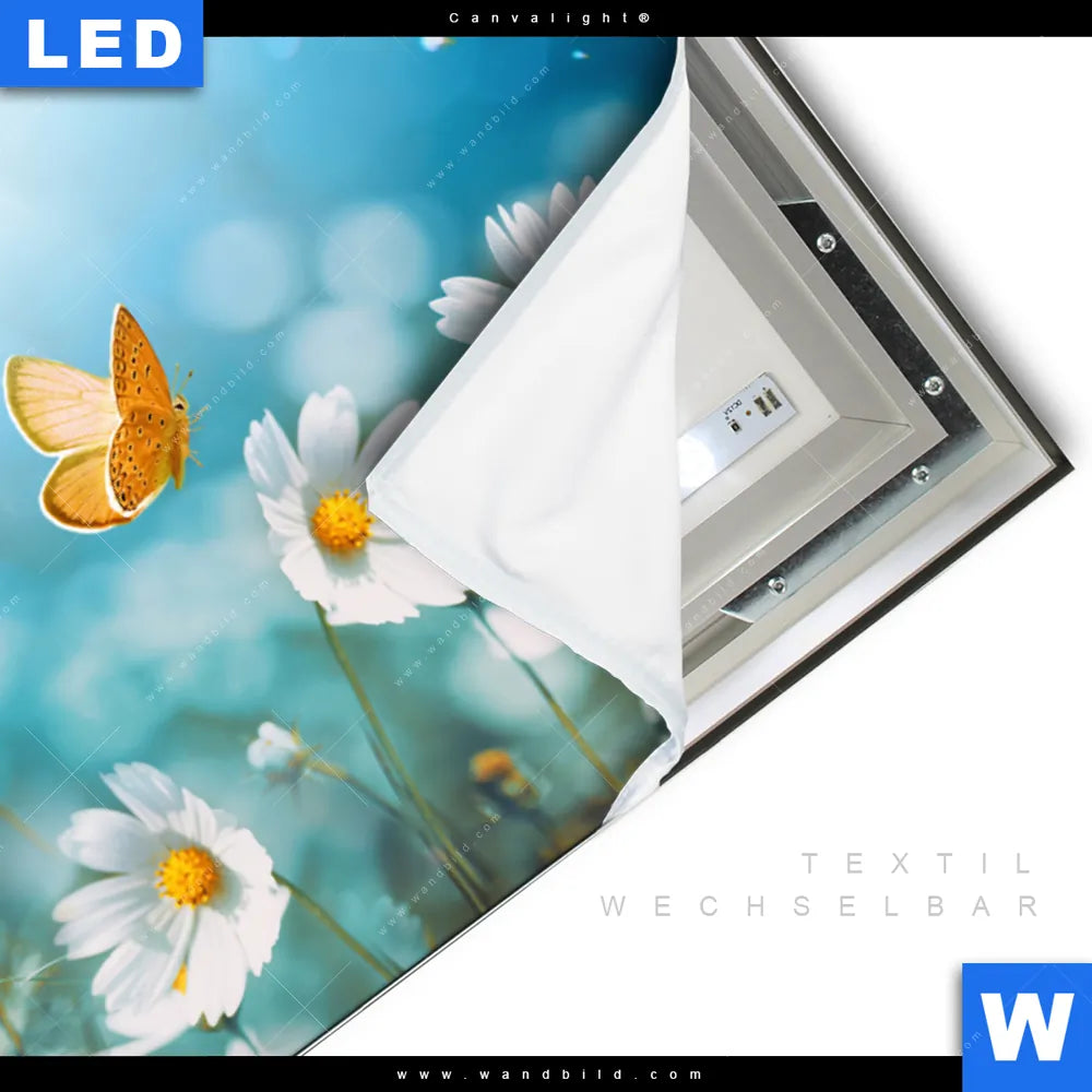 Canvalight® TEX Leuchtbild | Sommerwiese mit Schmetterlingen | Querformat