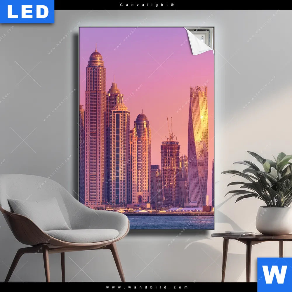 Canvalight® Leuchtbild | Sonnenaufgang in Dubai | Hochformat