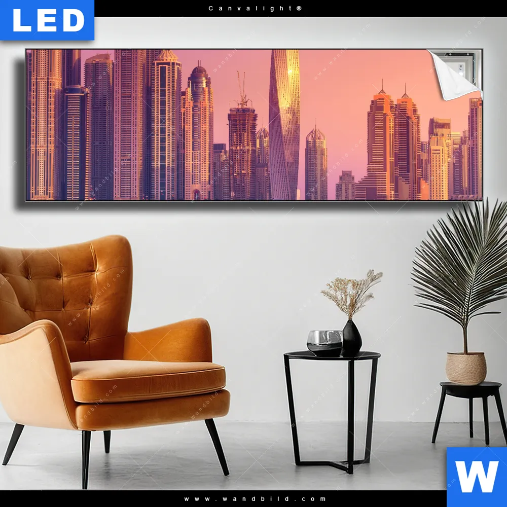 Canvalight® TEX Leuchtbild | Sonnenaufgang in Dubai | Panorama