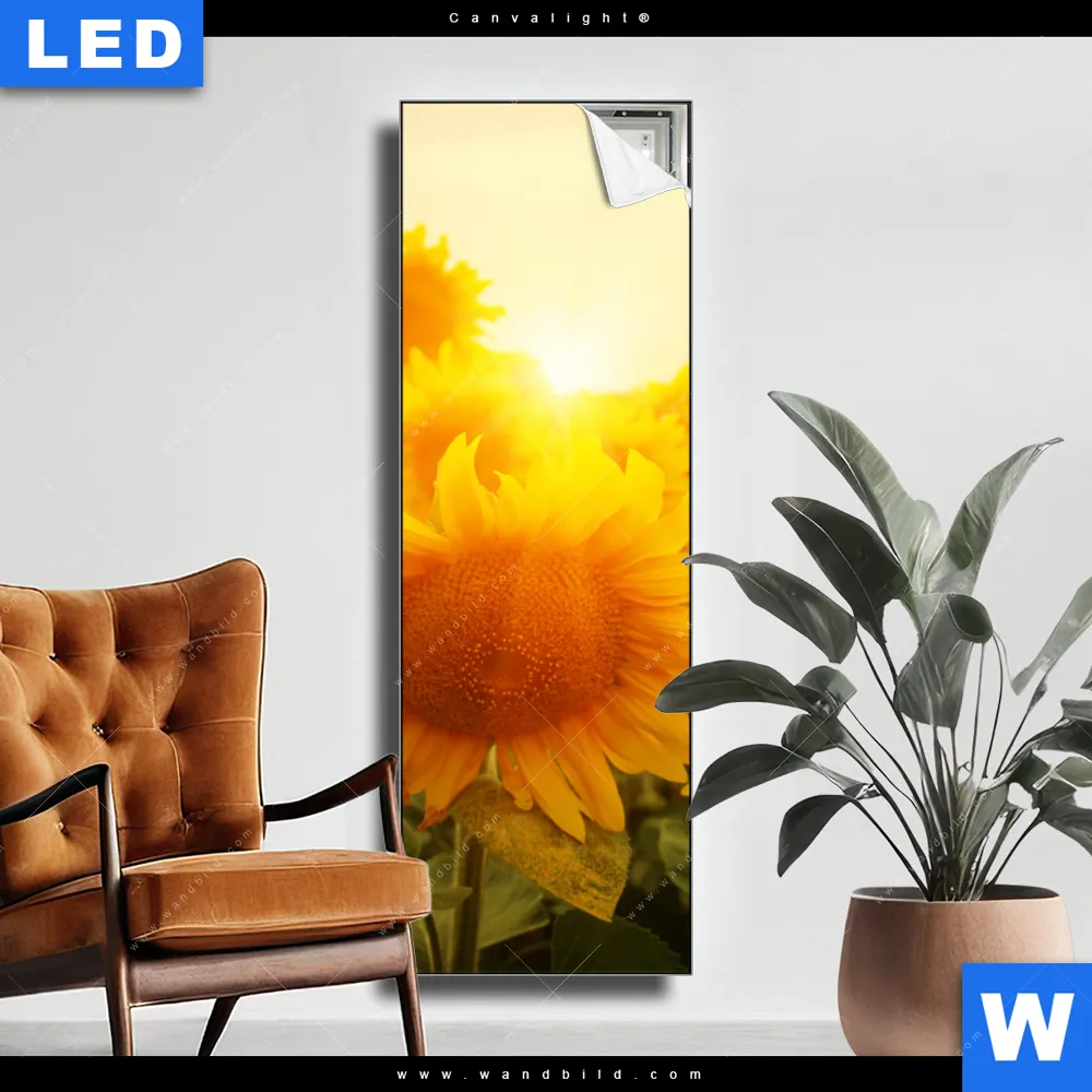 Canvalight® TEX Leuchtbild | Sonnenblumen im Abendlicht | Schmal