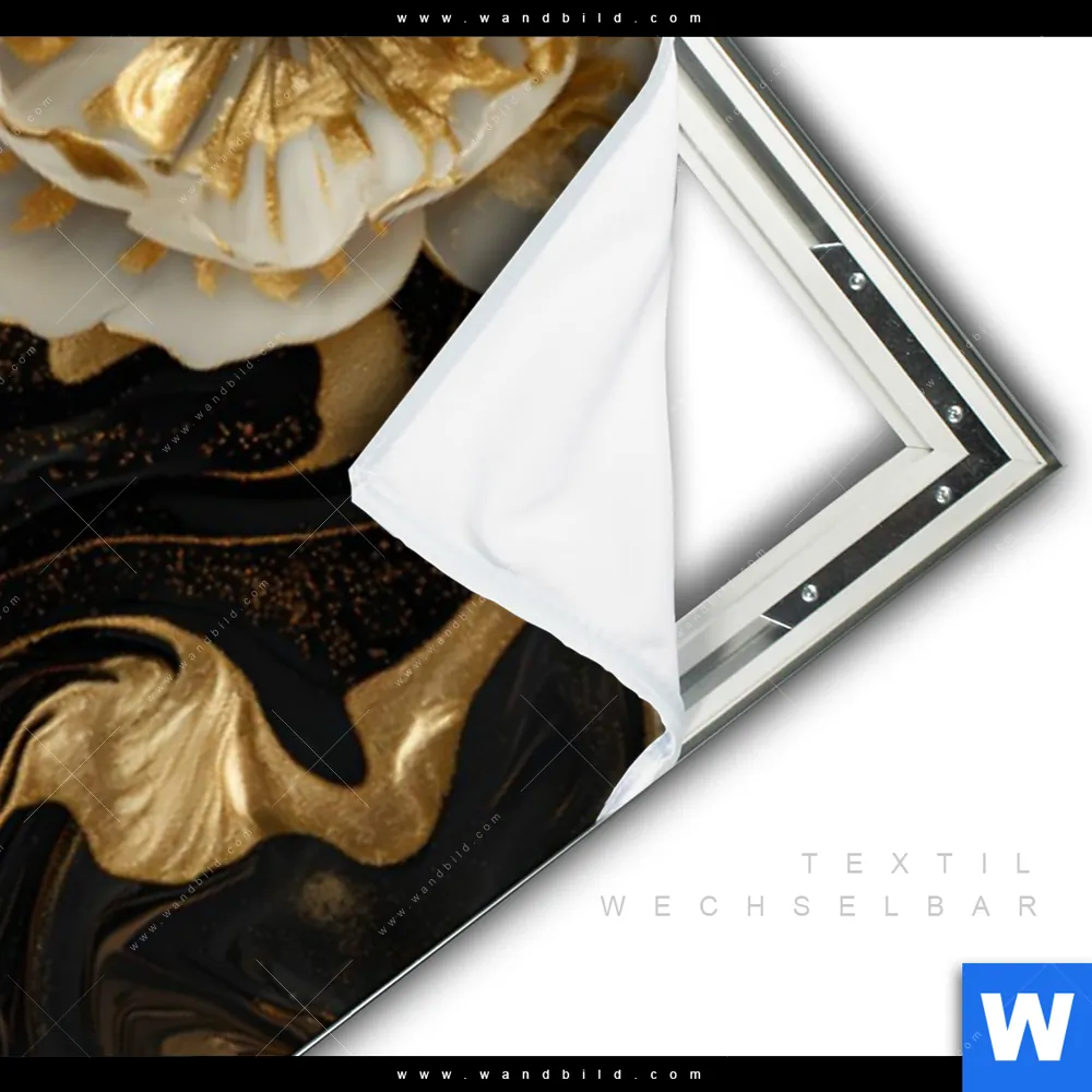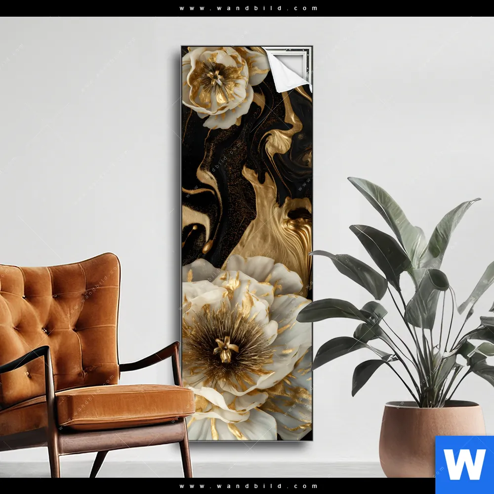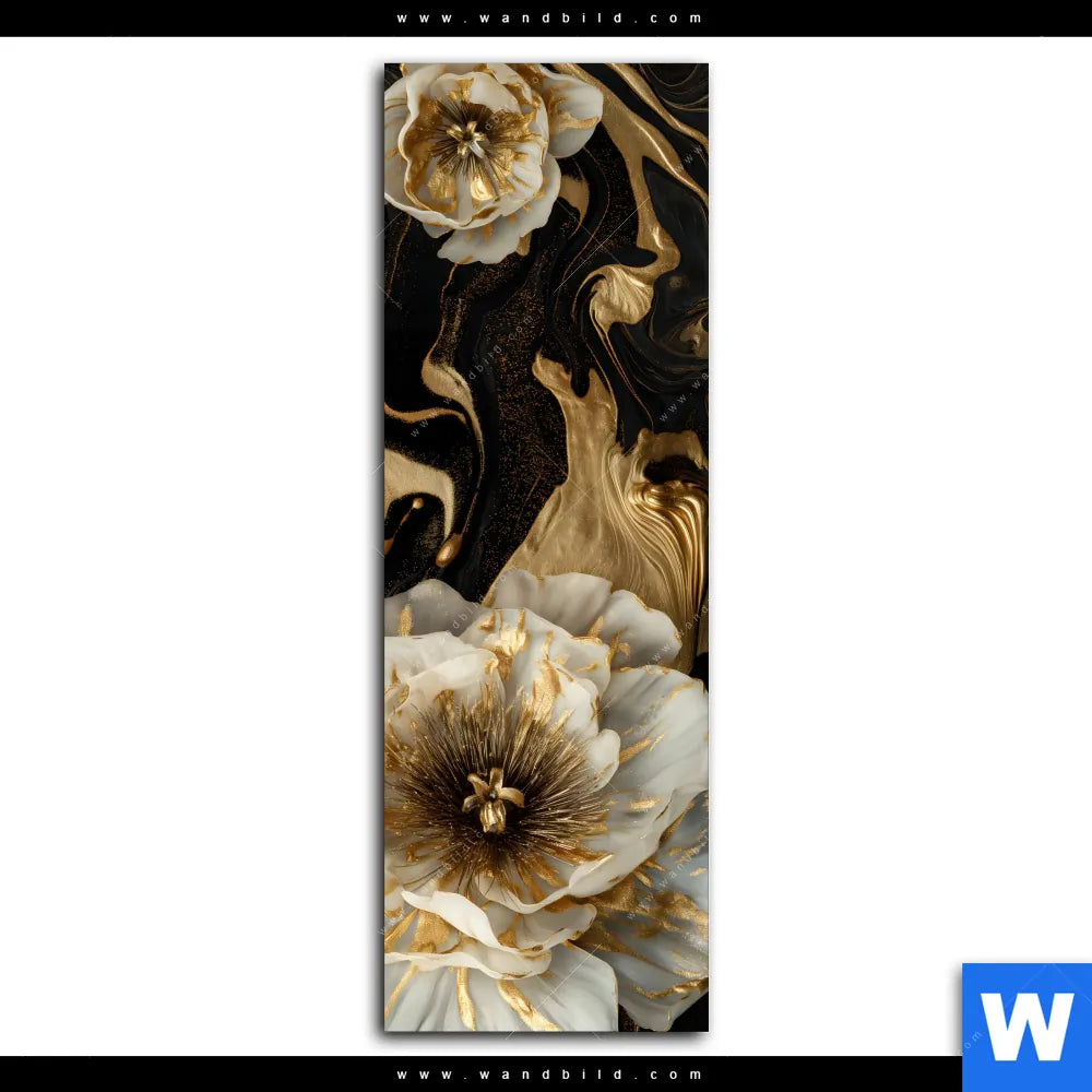 Spannbild | Blüten Gold Weiß Schwarz | Schmal