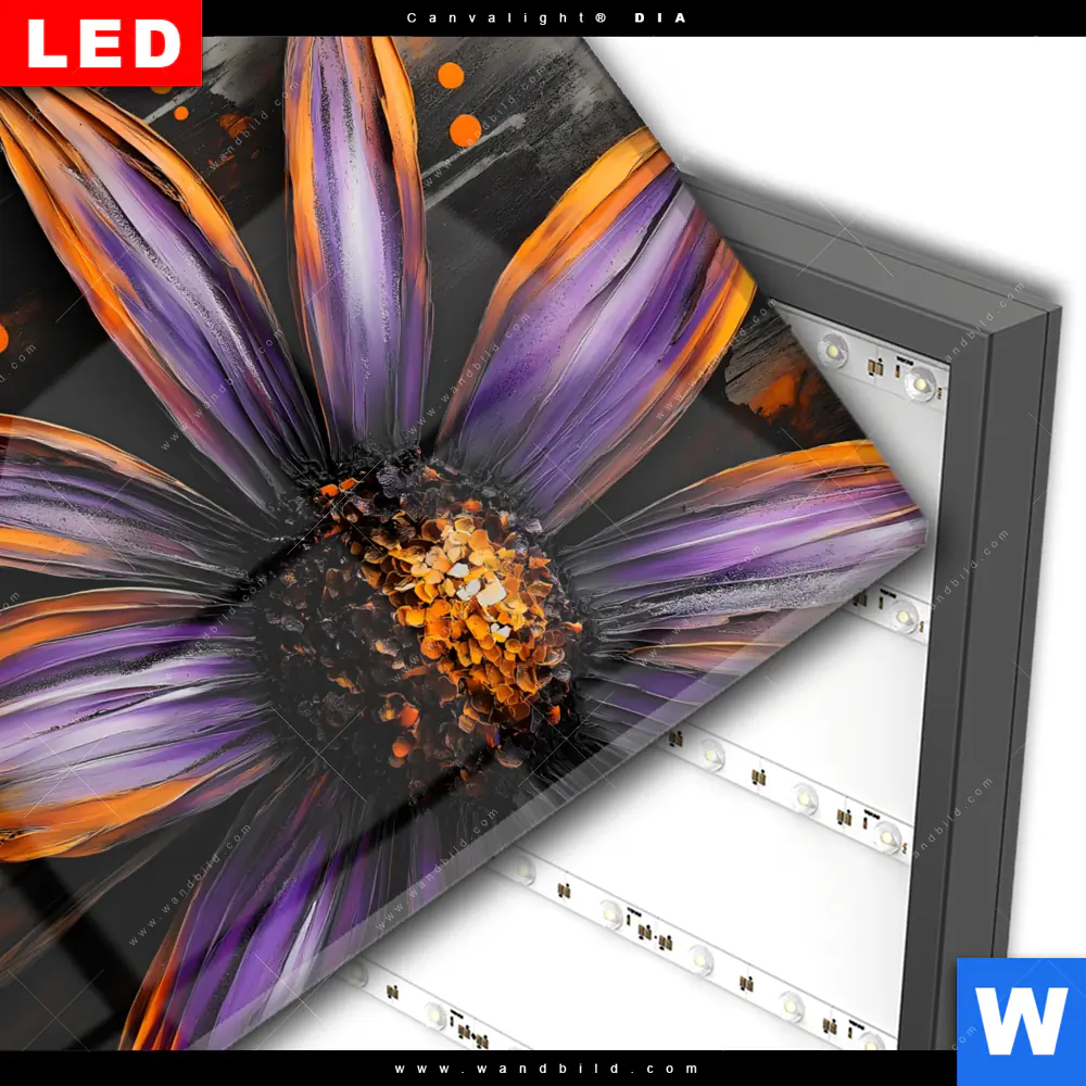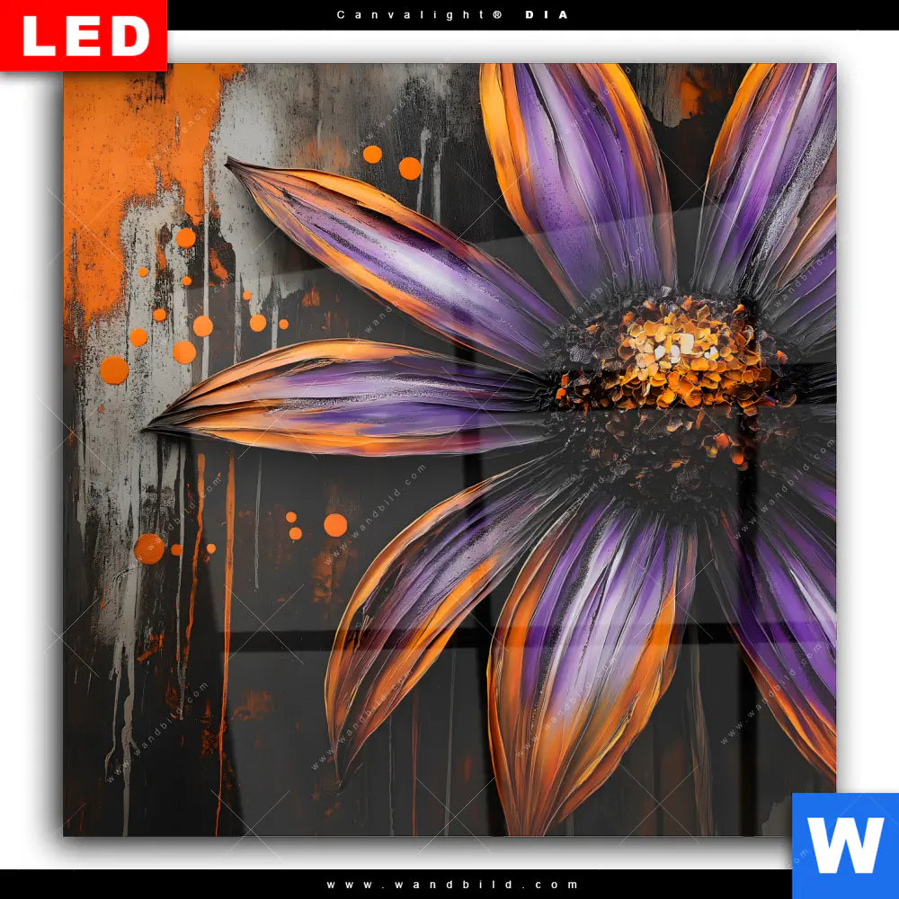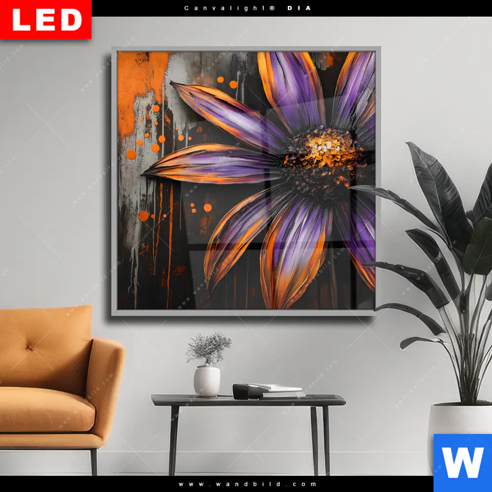 Wechselmotiv Acrylglas Canvalight® DIA | Abstrakte Blume in Orange & Lila | Quadrat