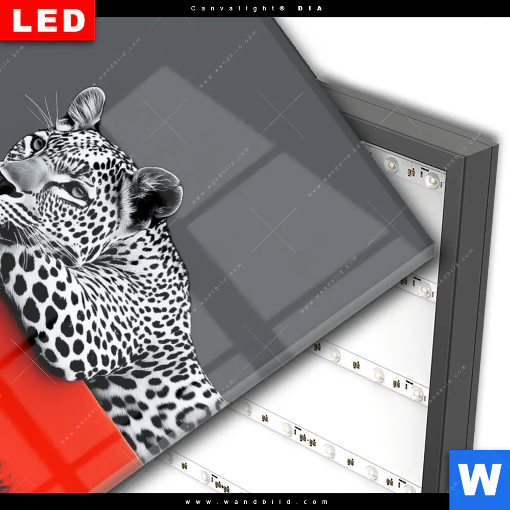 Wechselmotiv Acrylglas Canvalight® DIA | Leopard - Eleganz trifft Abstraktion | Hochformat