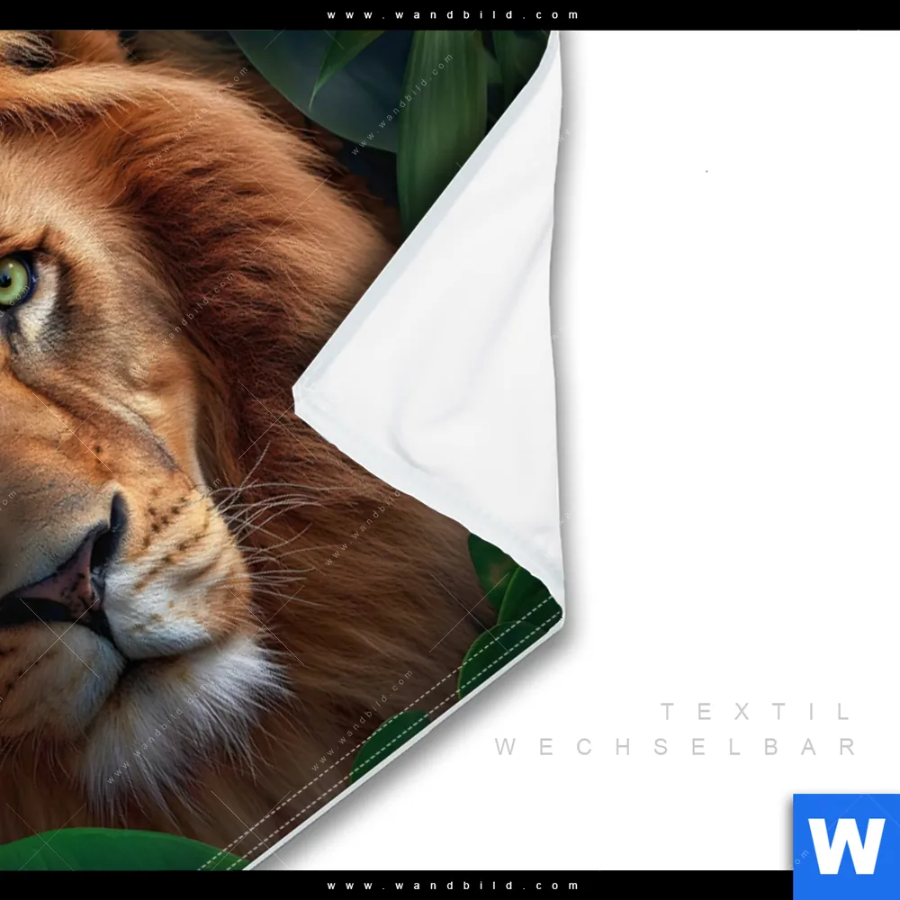 Wechselmotiv Textil | Löwe im grünen Regenwald | Querformat