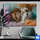 Wechselmotiv Textil | Sanfte Löwenmomente in buntem Nebel | Panorama