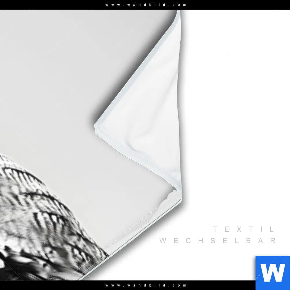 Wechselmotiv Textil | Schwarz-Weiß Eulenportrait | Panorama