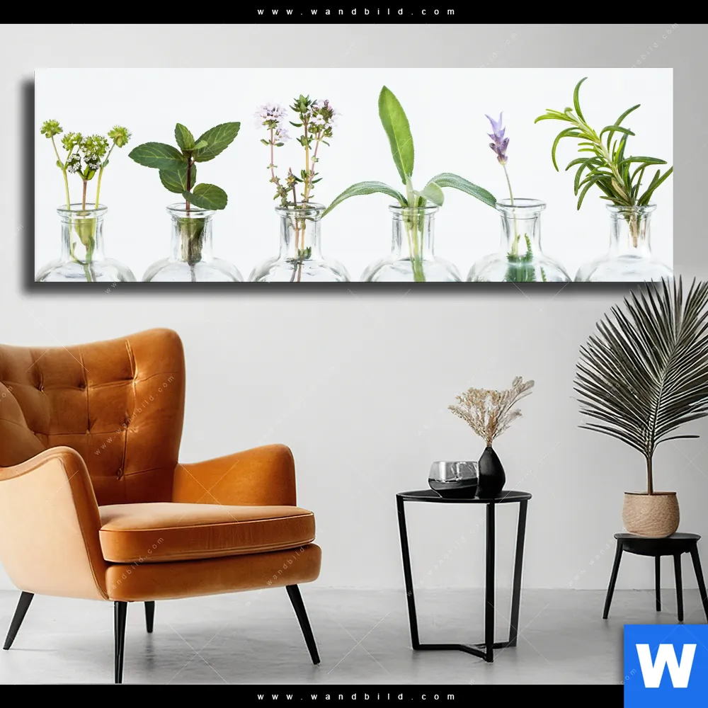 Leinwandbild | Kräuter in Flaschen | Panorama