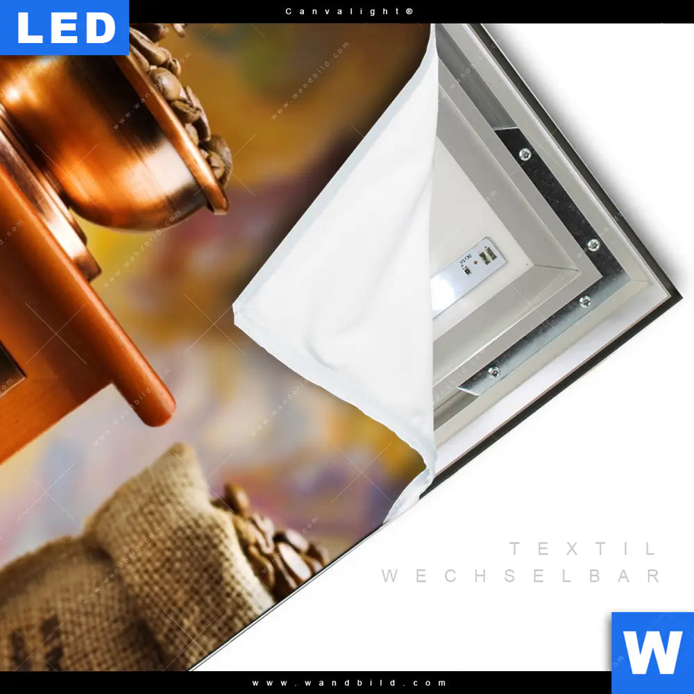 Canvalight® TEX Leuchtbild | Kaffeegenuss in Perfektion | Hochformat