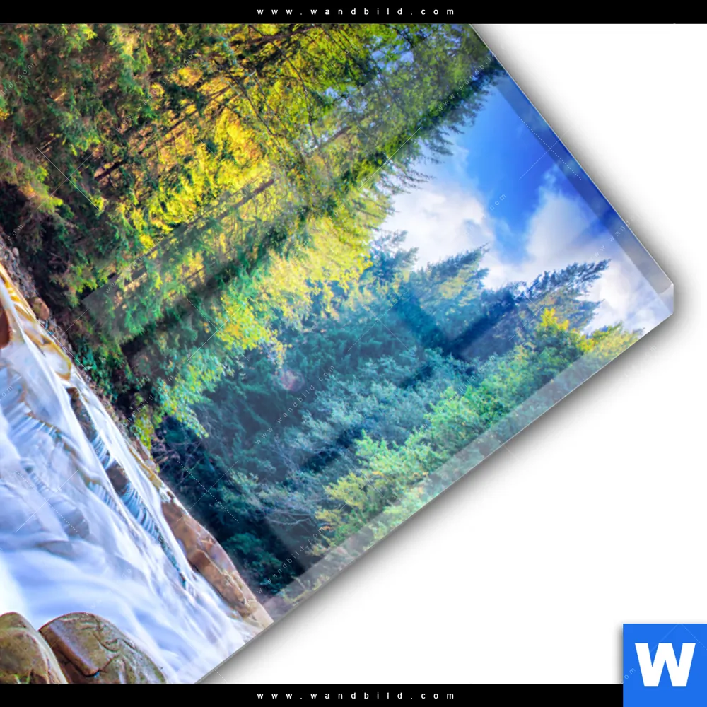 Acrylglasbild | Schöner Wasserfall im Wald | Hochformat