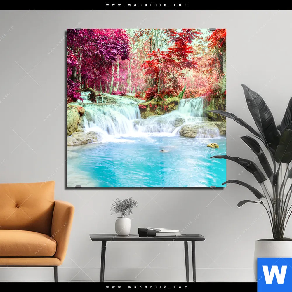 Acrylglasbild | Wald & Wasserfall No. 3 | Quadrat