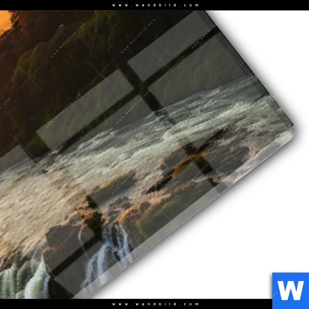 Acrylglasbild | Wasserfall bei Abendsonne | Panorama