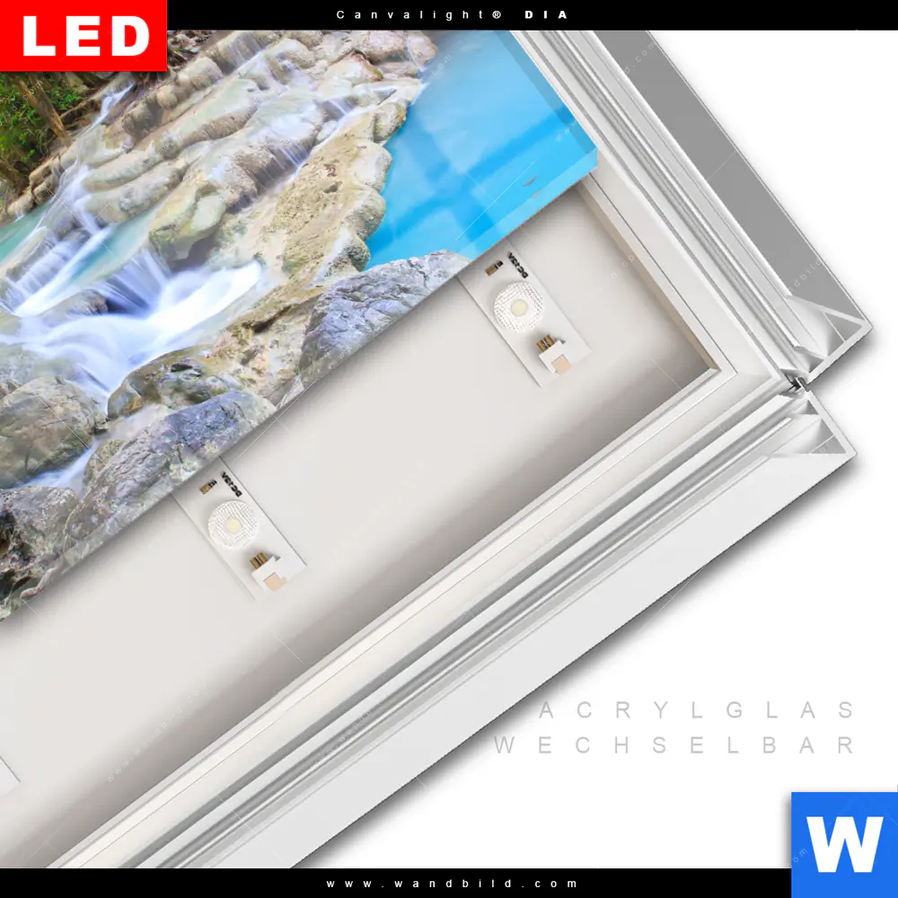 LED-Glasbild mit austauschbarem Acrylglas-Druck (Wechselbild)