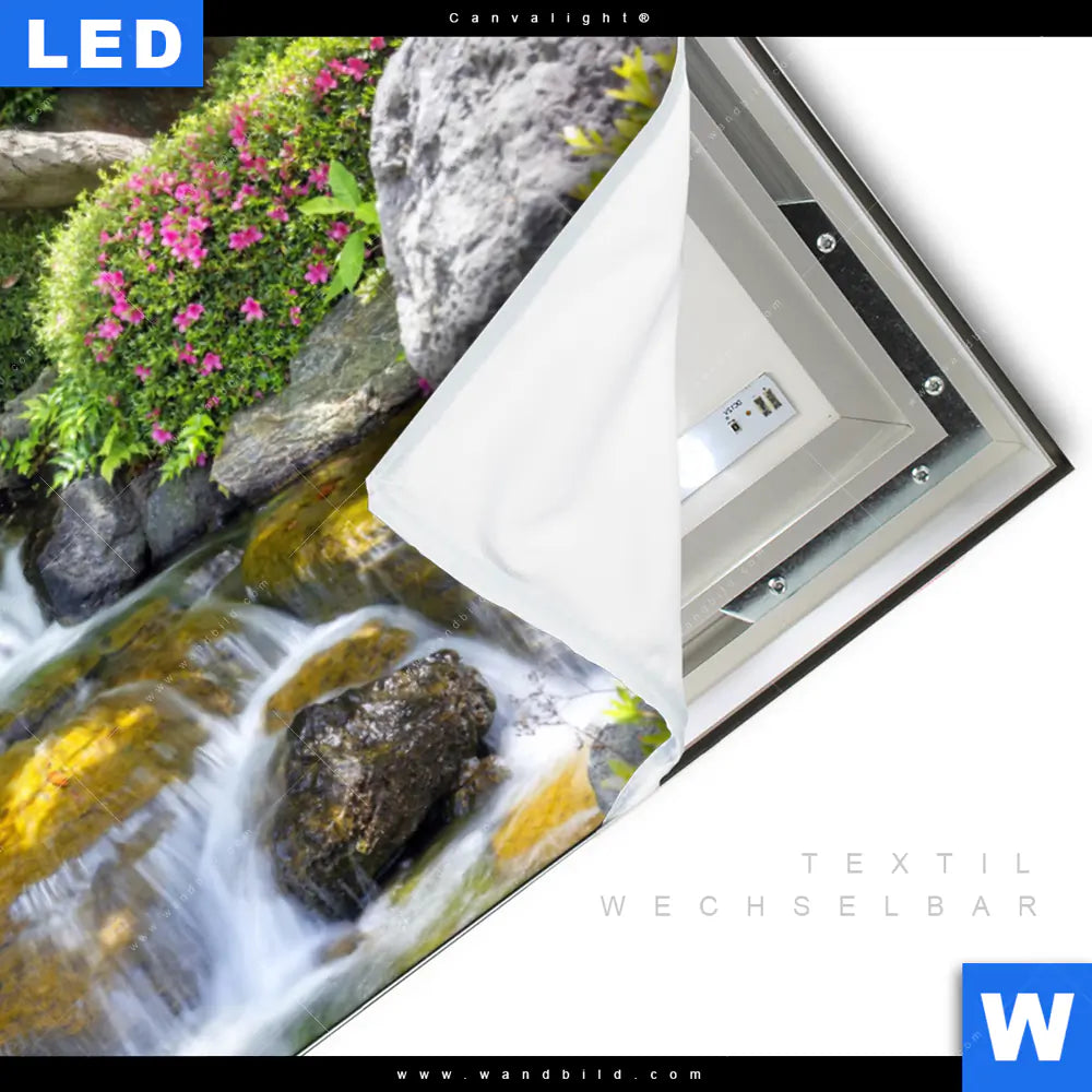 Canvalight® TEX Leuchtbild | Japanischer Garten mit Wasserlauf | Querformat