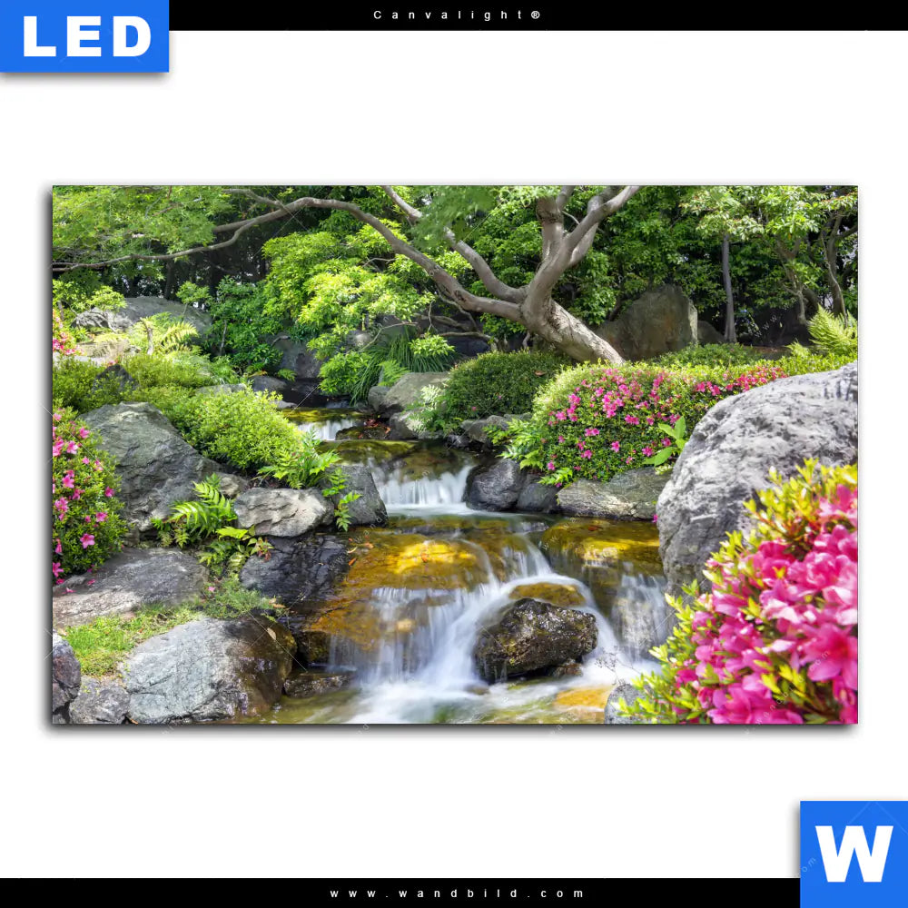 Canvalight® Leuchtbild | Japanischer Garten mit Wasserlauf | Querformat