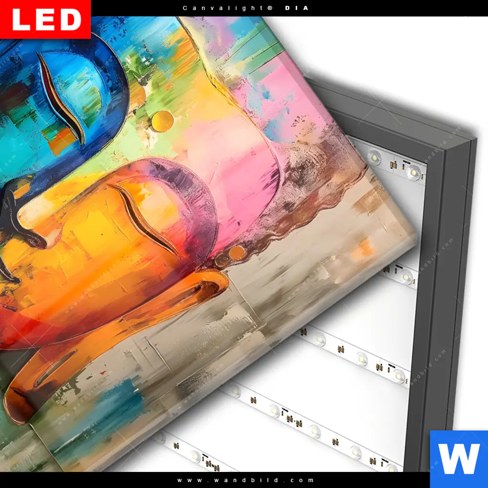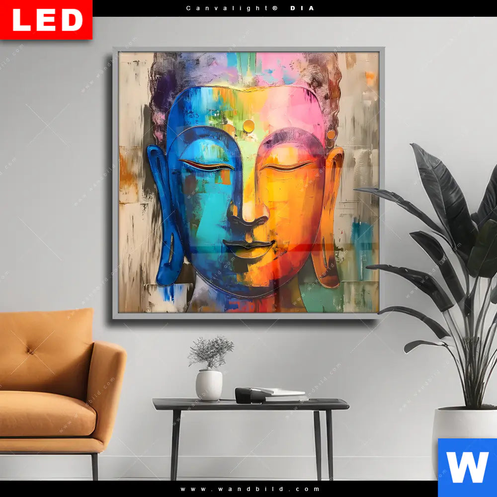 Wechselmotiv Acrylglas Canvalight® DIA | Abstraktes Buddha-Gesicht | Quadrat