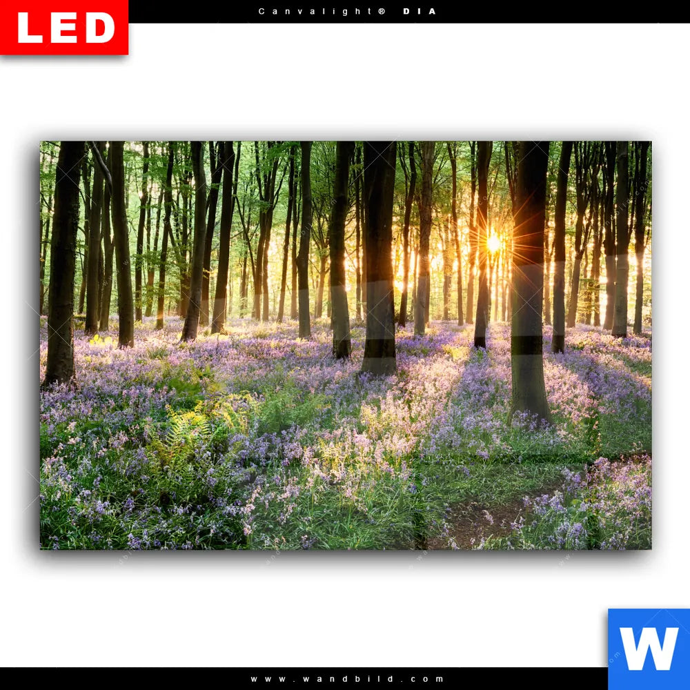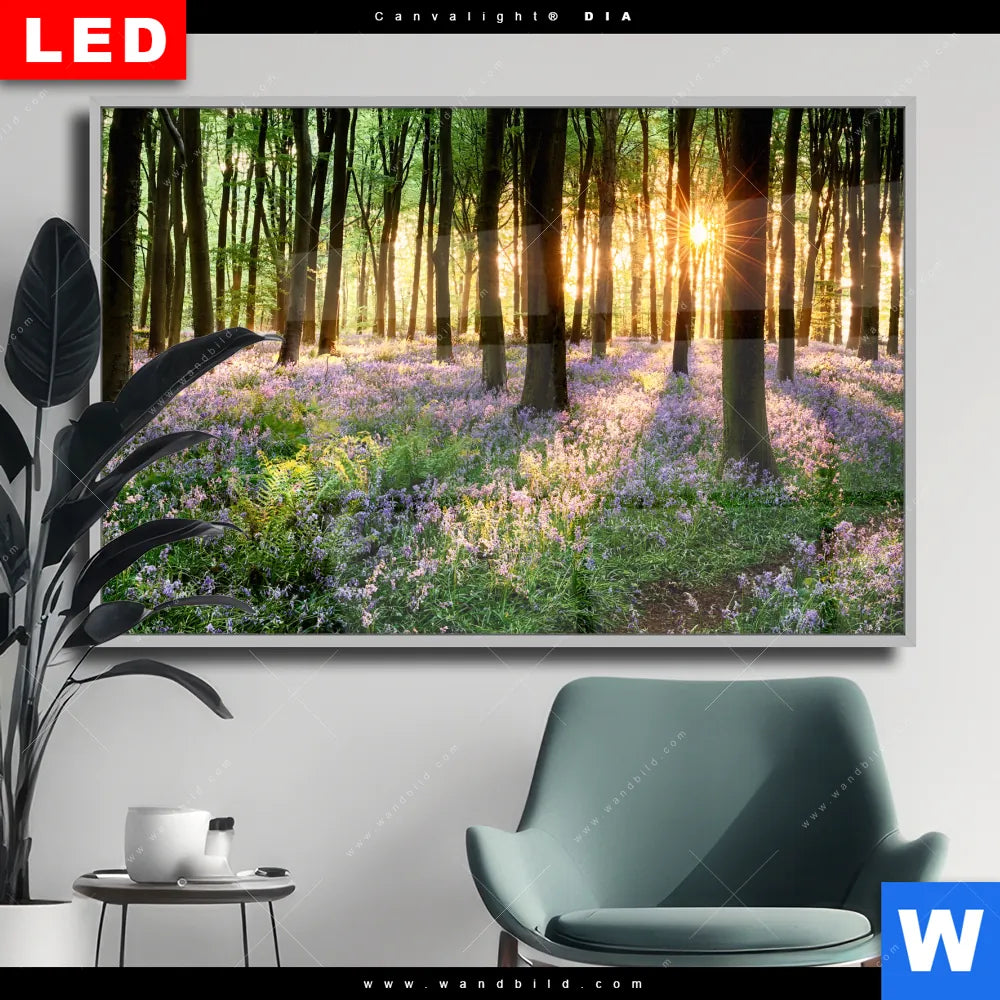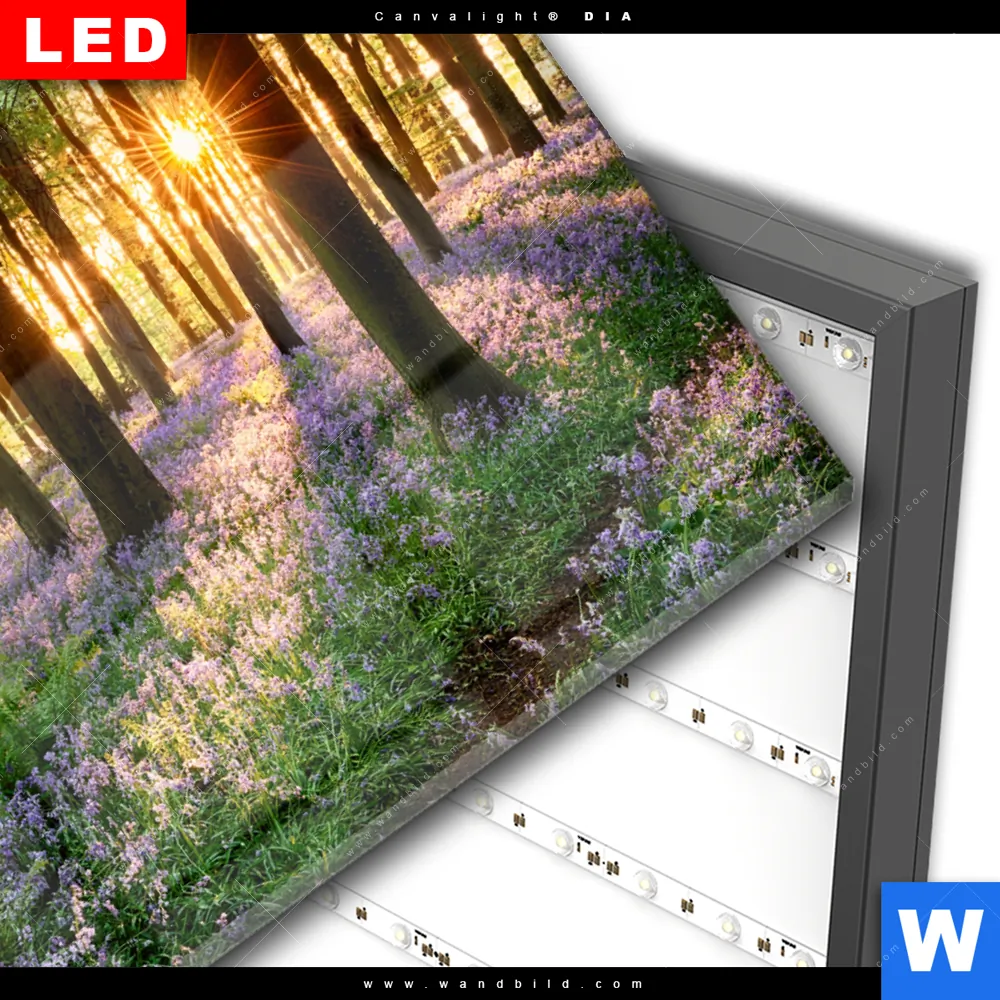 Wechselmotiv Acrylglas Canvalight® DIA | Blühender Wald bei Sonnenaufgang | Querformat
