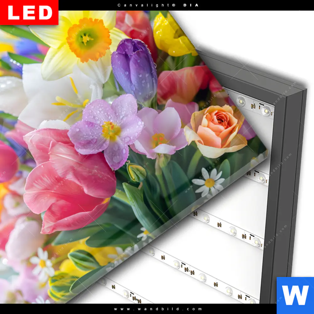 Wechselmotiv Acrylglas Canvalight® DIA | Farbenfrohe Frühlingsblüten | Querformat