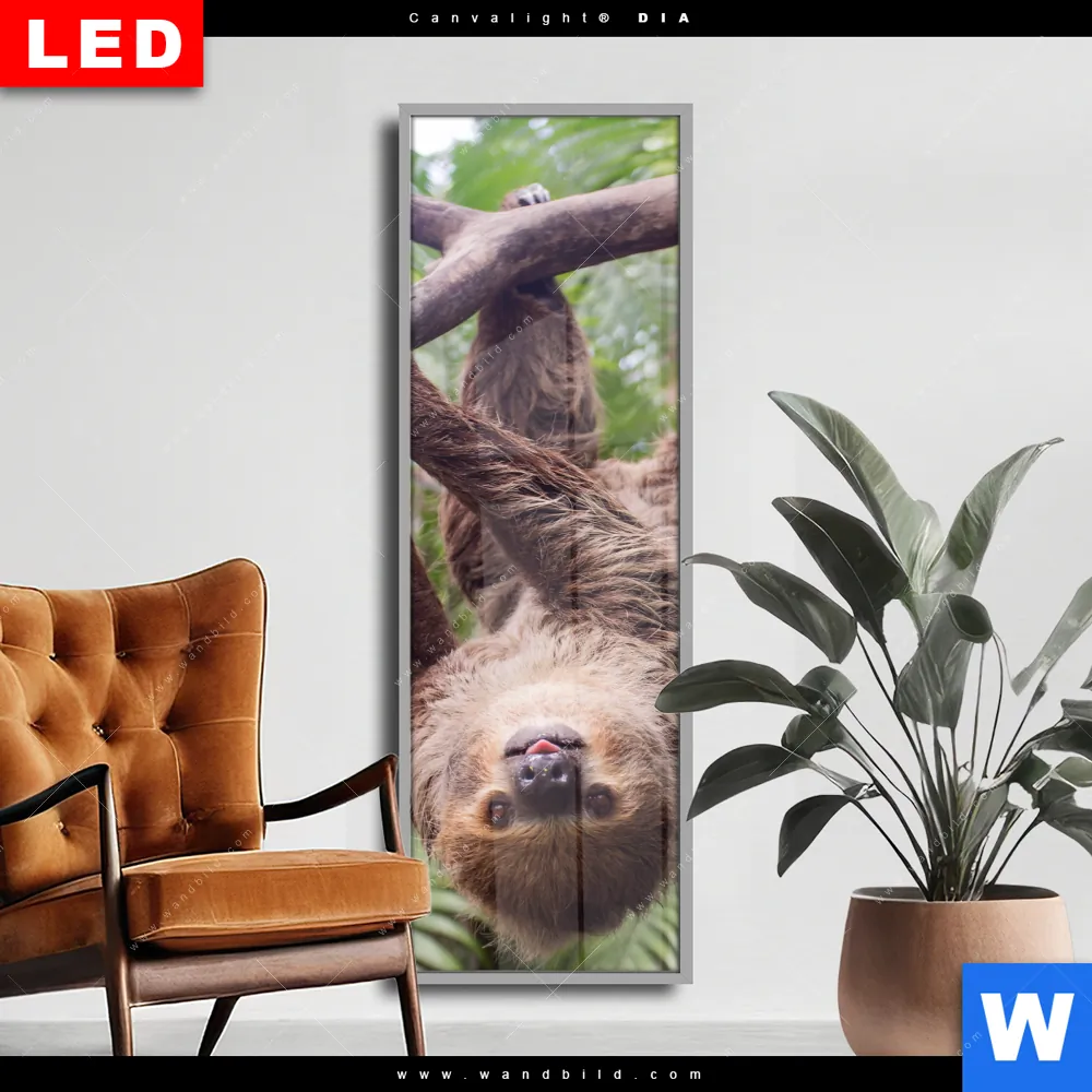 Wechselmotiv Acrylglas Canvalight® DIA | Faultier streckt Zunge raus | Schmal